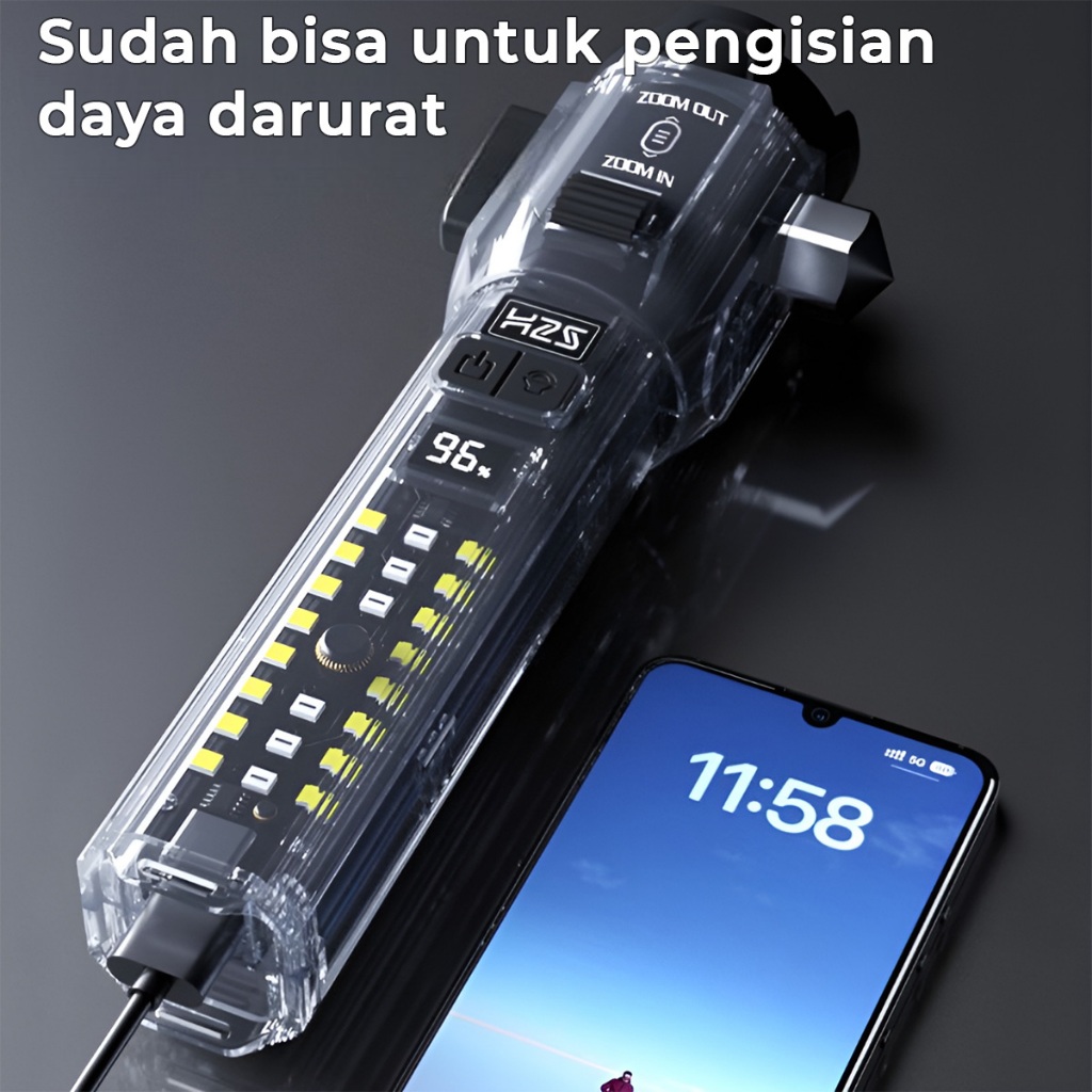 H2S Senter Safety 10 IN 1 LED Laser 30w Cas Roll Zoom In Out Hammer Emergency Alarm HS-L7F