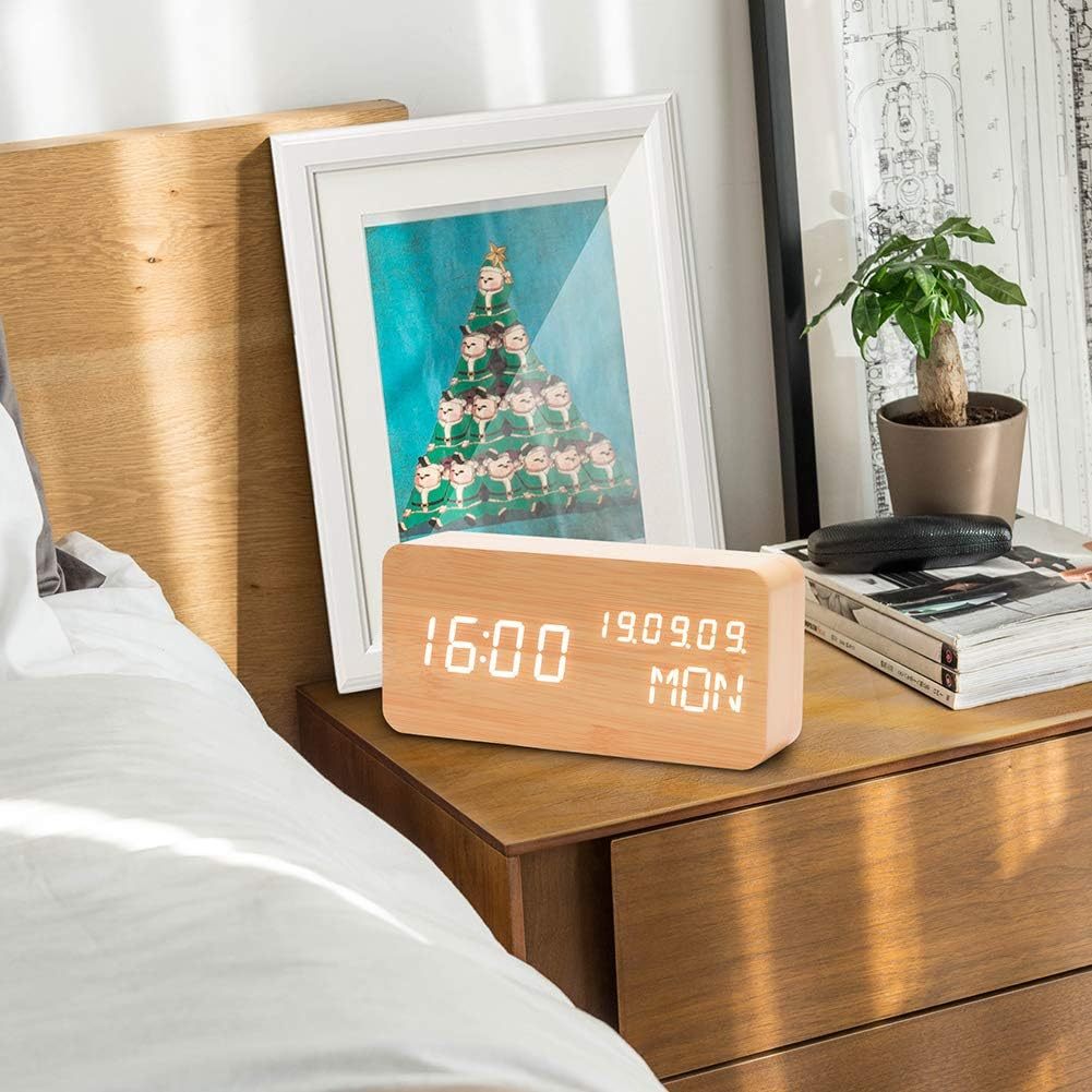 Jam Weker Alarm Digital Kayu Clock Temperatur Voice Control - TX602 - Yellow with White Side OMHX0ZYW