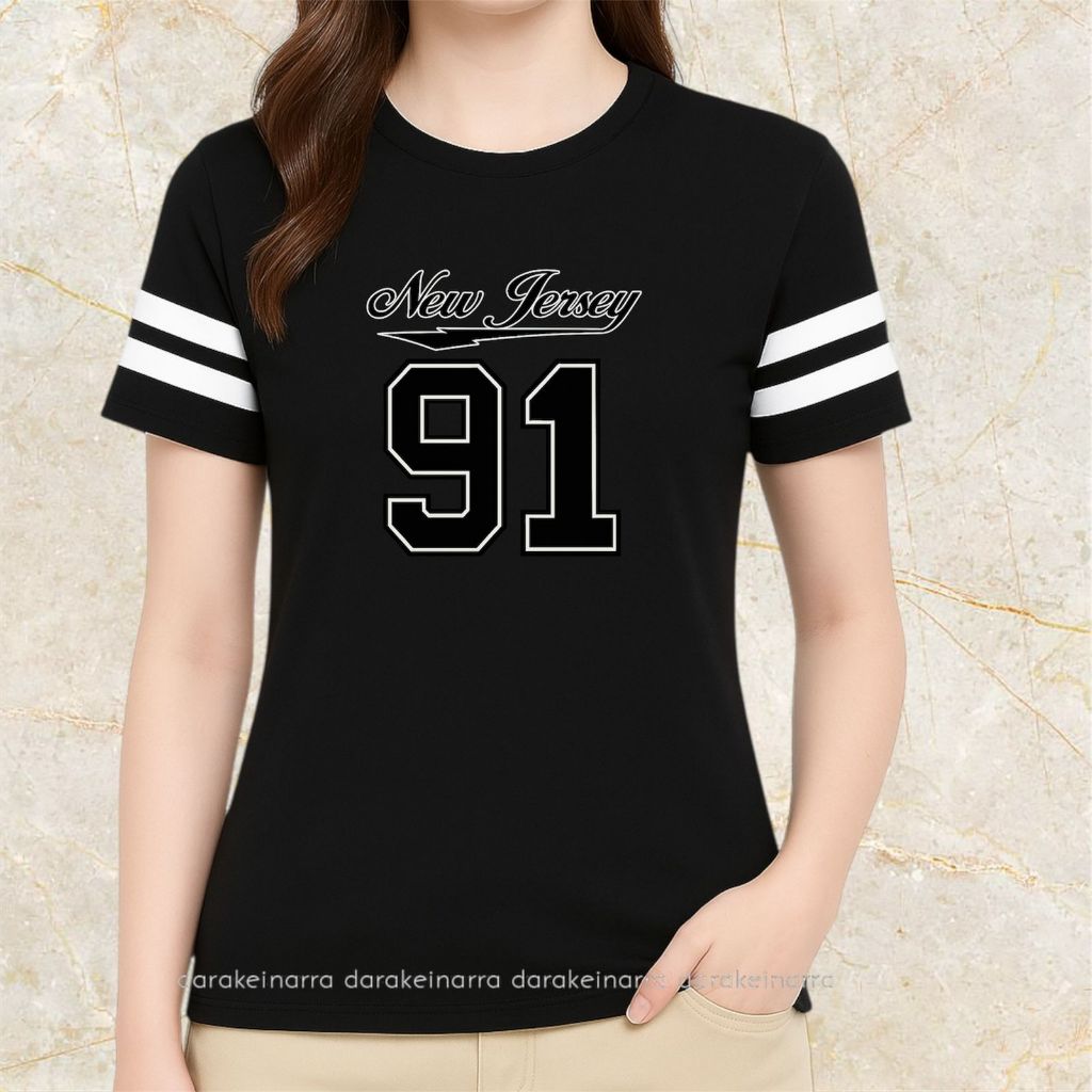 darakeinarra- Kaos Jersey Angka 91 Atasan wanita lengan pendek Baju jersey warna merah putih Hitam Nevi Abutua Oblong uk