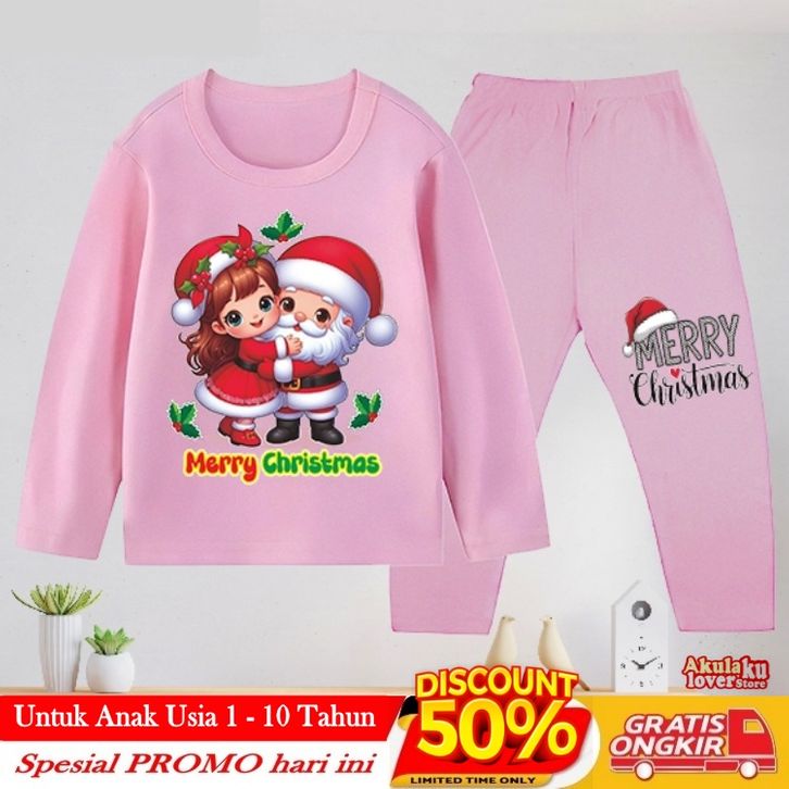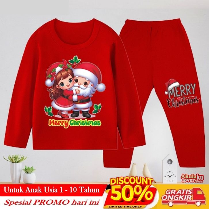 [PROMO] Baju Tidur Anak / Setelan Panjang Anak Cowok Dan Cewek Usia 1-10 Tahun - Natal Santa Claus Merry Christmas -2046