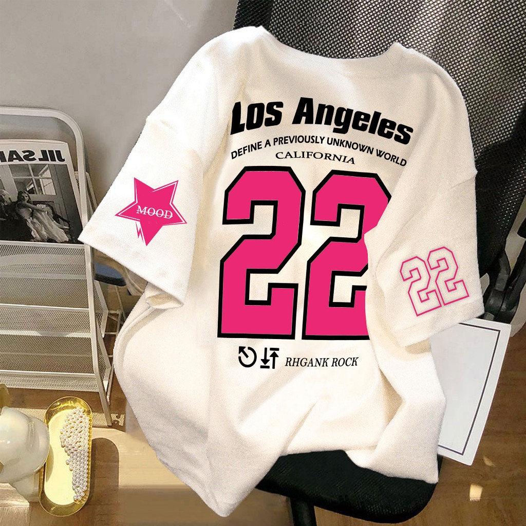 Wenz Kaos Oversize 22 Los Angeles Distro Lengan Pendek Unisex Cowok cewek Baju Streetwear Pria Wanita style jersey trend
