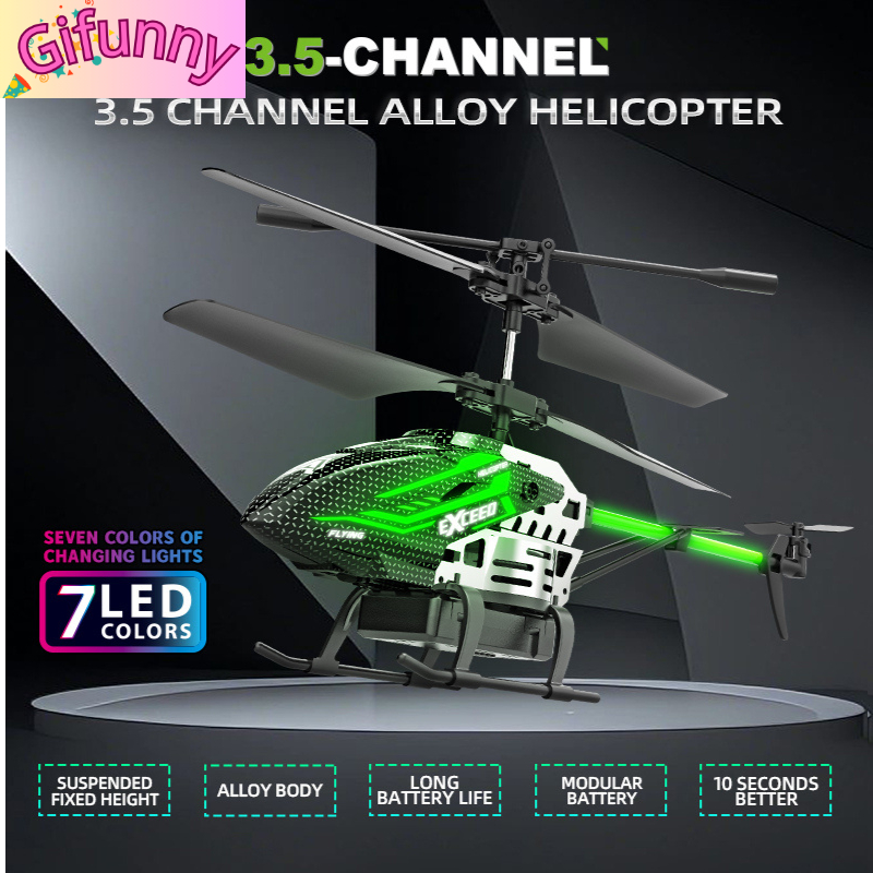 TERLARIS Gifunny Mainan Helikopter Remote Control Anti Banting 3.5 Channels dengan 7 Lampu LED