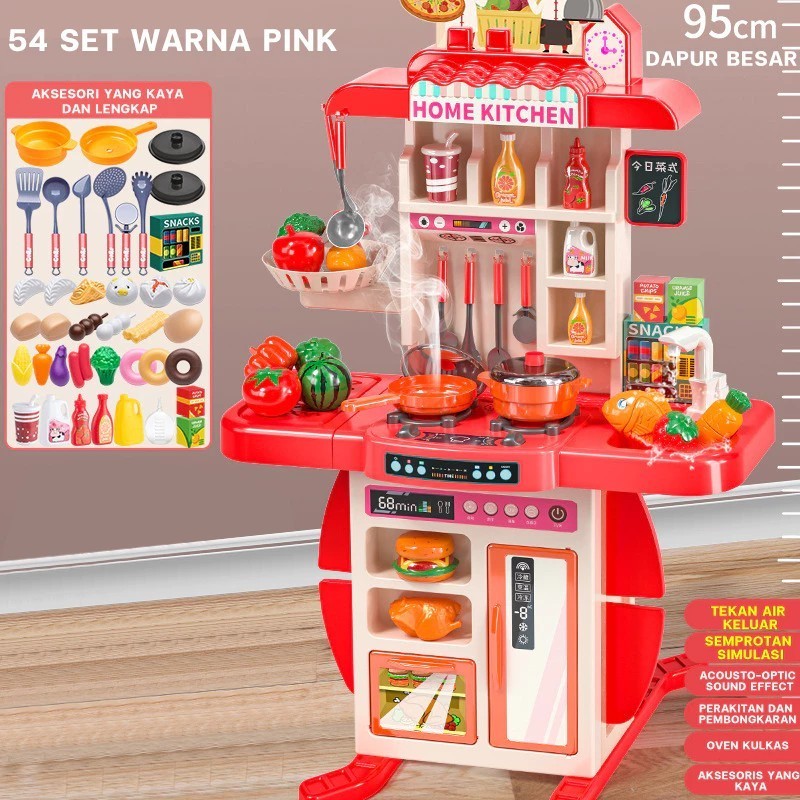 TERLARIS 95CM Mainan Kitchen Set Jumbo dengan Wastafel Mainan Anak Spraying Mist Kitchen Bisa Keluar Asap Dan Menyala RM