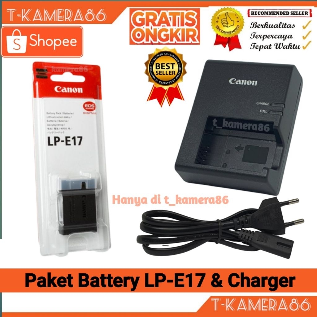 PAKET BATERAI CANON LP-E17 DAN CHARGER LC-E17 FOR EOS M3 M5 750D 200D 250D 800D