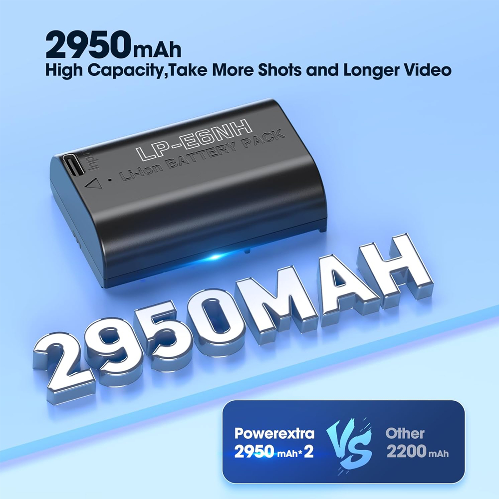 POWEREXTRA Battery Canon LP-E6 with Direct Rechargeable USB-C - 2 PCS