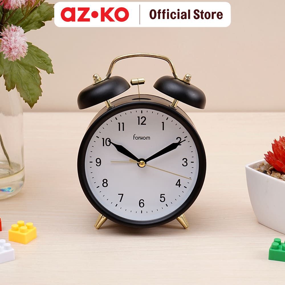 AZKO Forhom Jam Weker Twin Bell - Hitam Alarm Clock Waker Clock Jam Alarm Digital Dekorasi Kamar Tidur