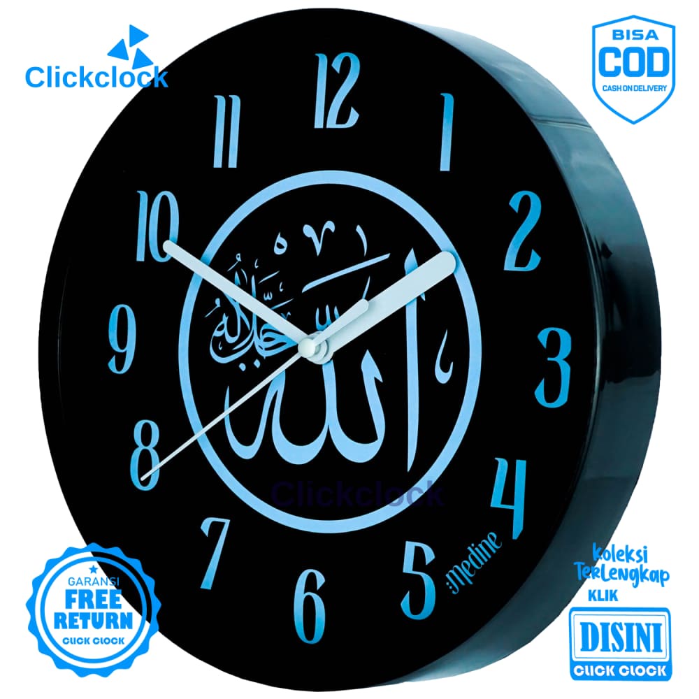 Jam Dinding Analog Kaligrafi Arab Biru Medine 1181-1668 Besar Hiasan Rumah Murah