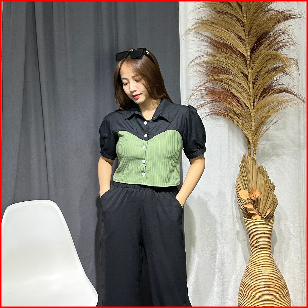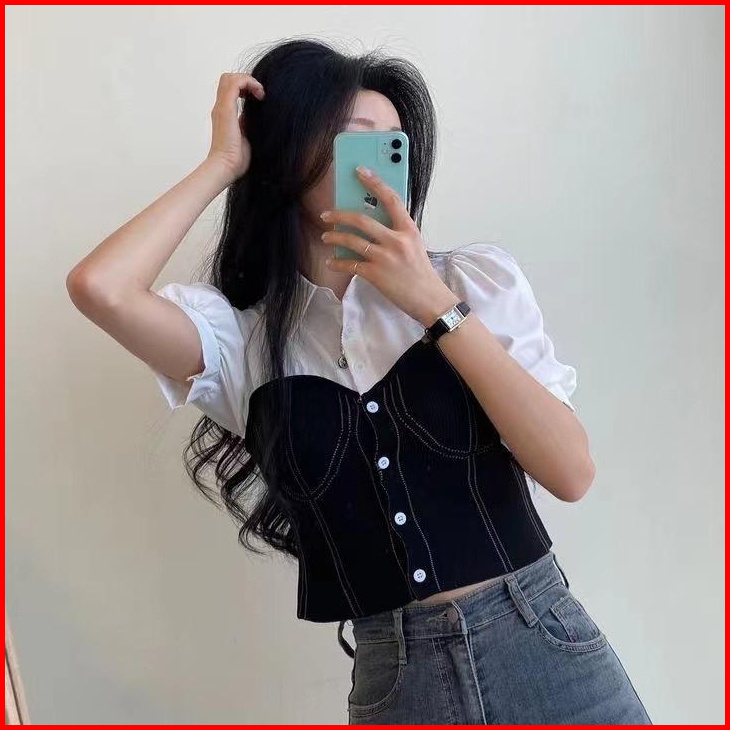 Rx Fashion - Dahyun Blouse 2in1 Mix Hornet Lengan Pendek Dan Lengan Panjang Atasan Blouse Crop Wanita -pn