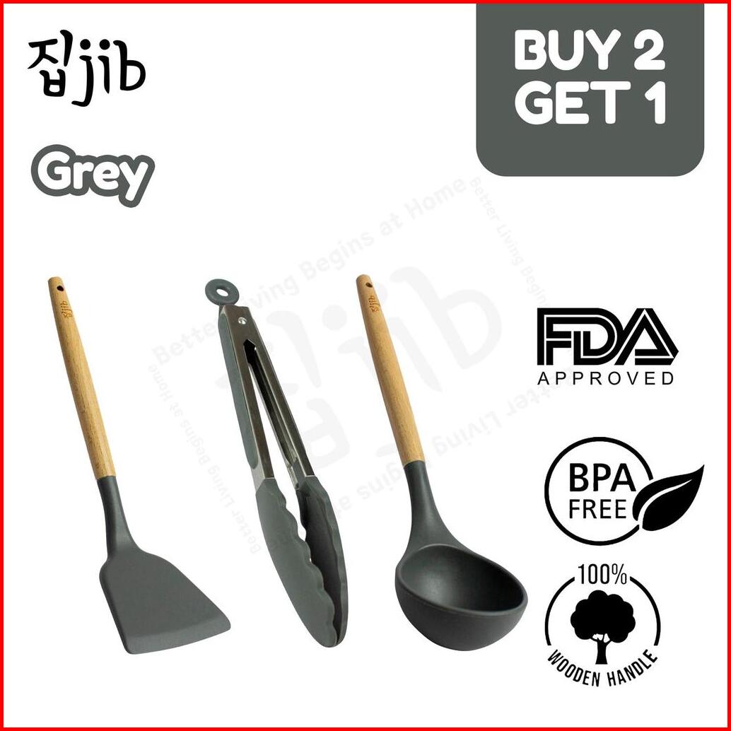 Jib Utensil Silicone Buy 2 Get Ladle Bundle Utensil Silikon Sutil Silikon Tahan Panas Gagang Kayu Kitchenware