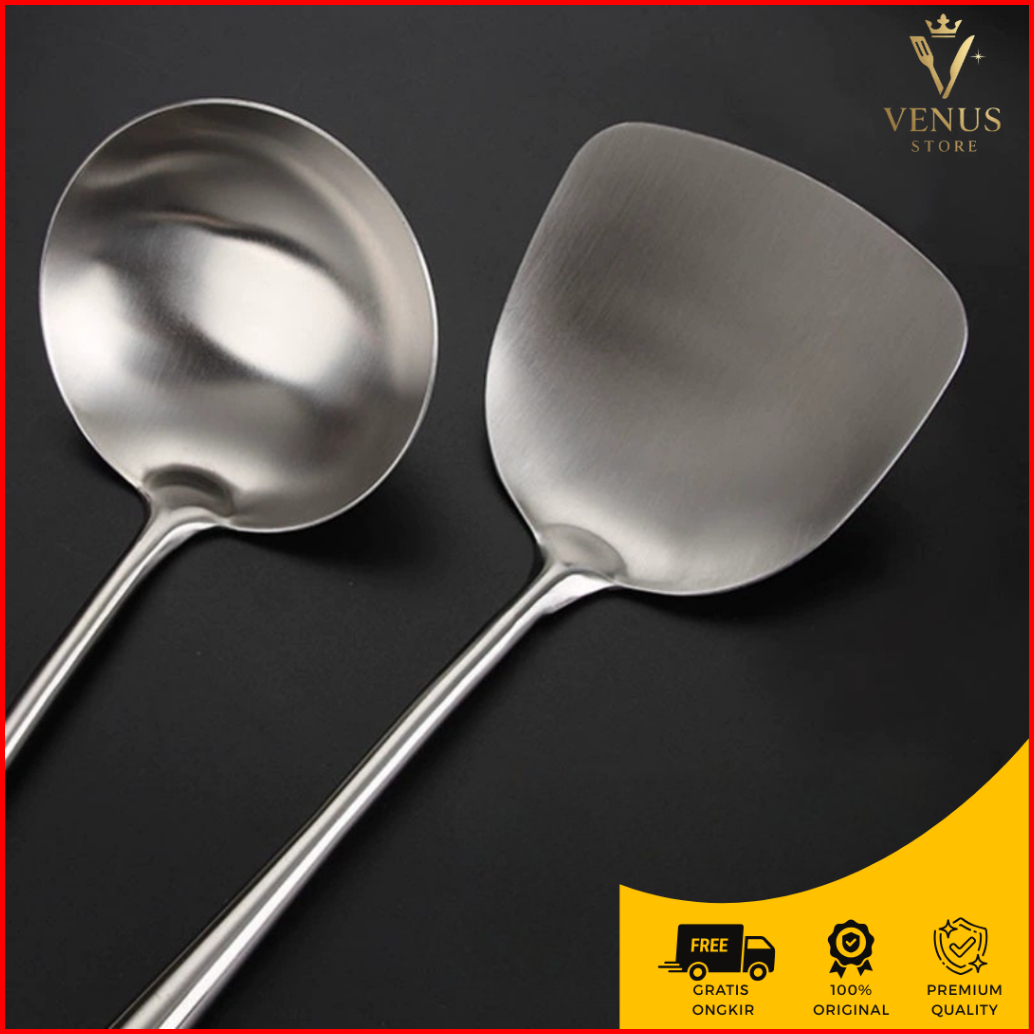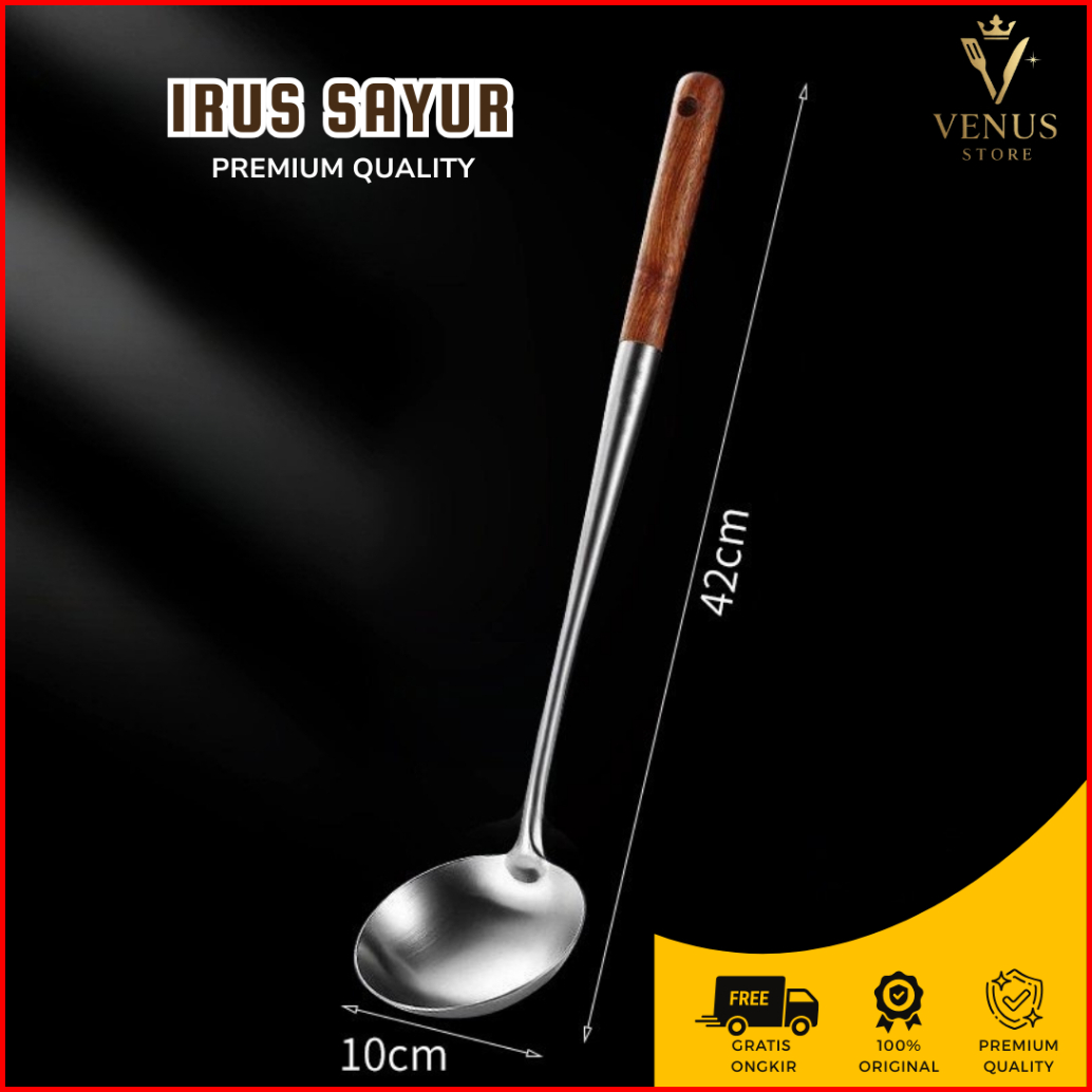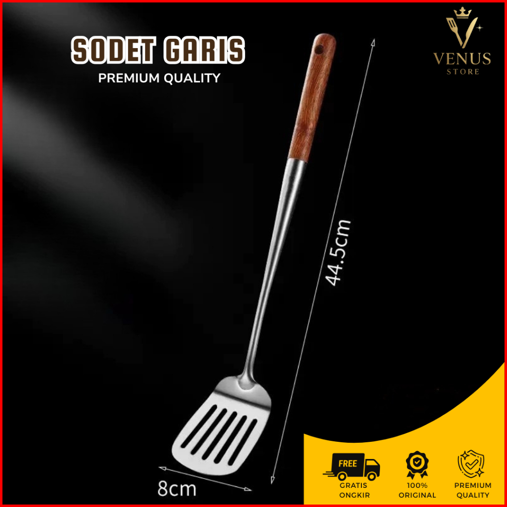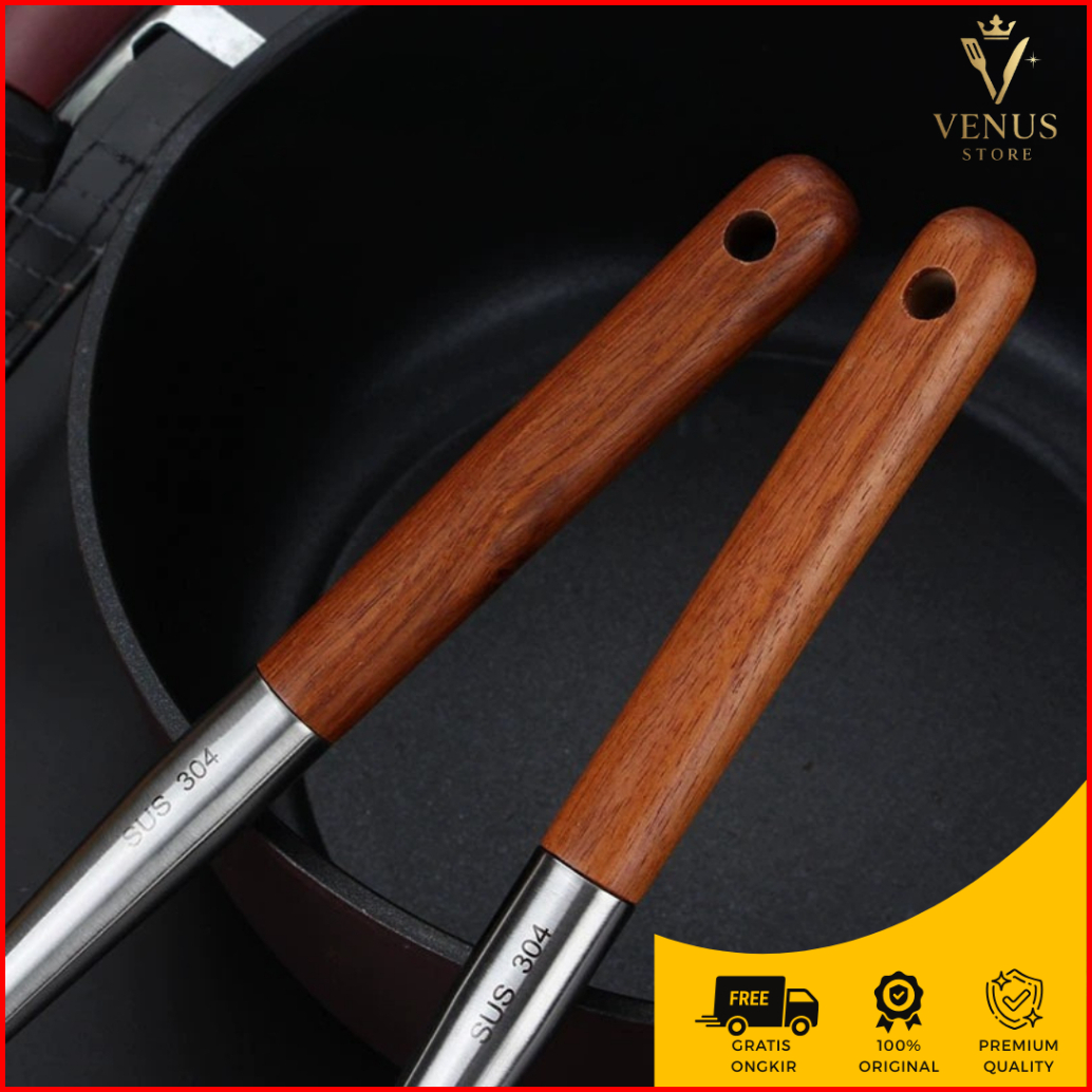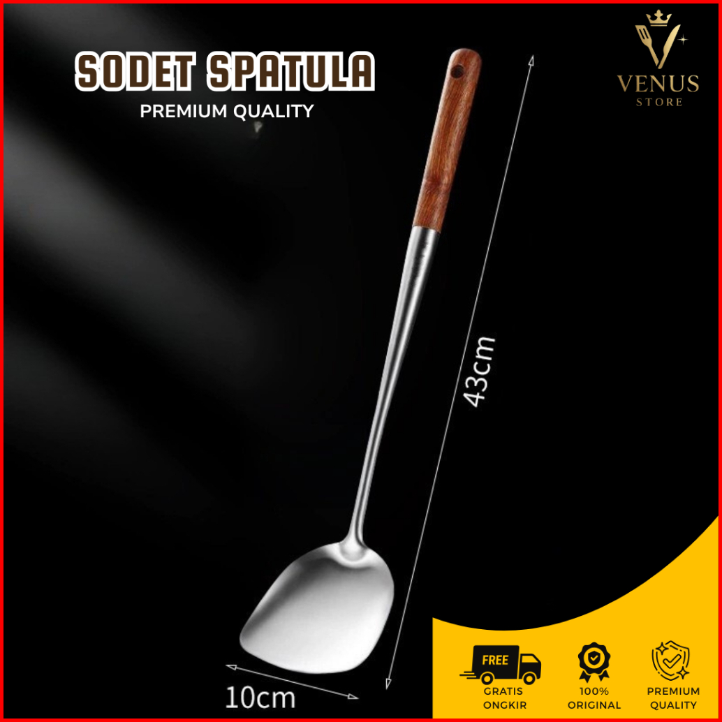 Venus Store - Spatula Sutil Gagang Kayu Sus304 Extra Panjang Sodet Sendok Centong
