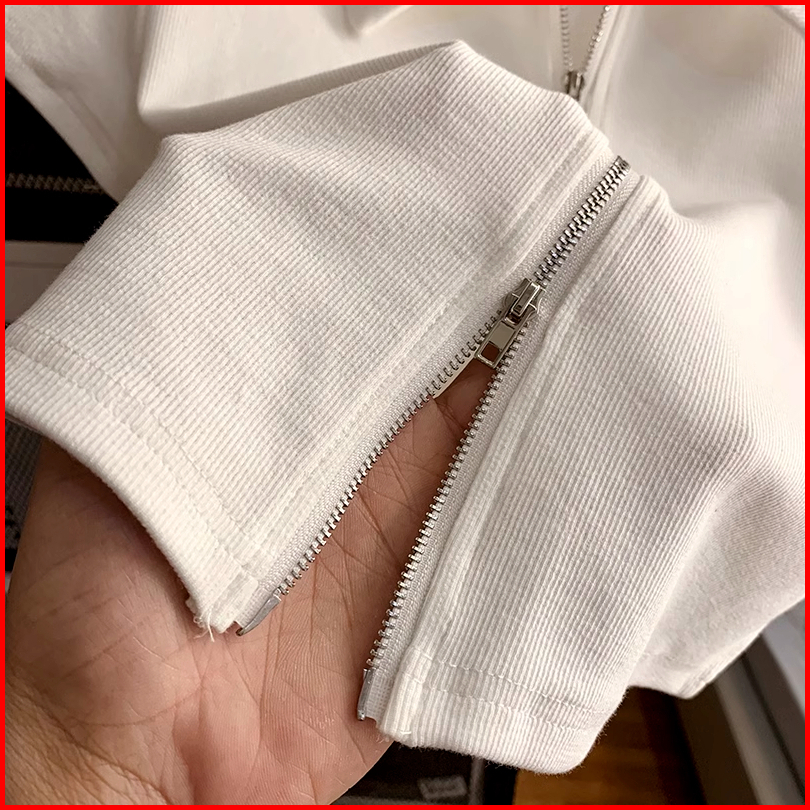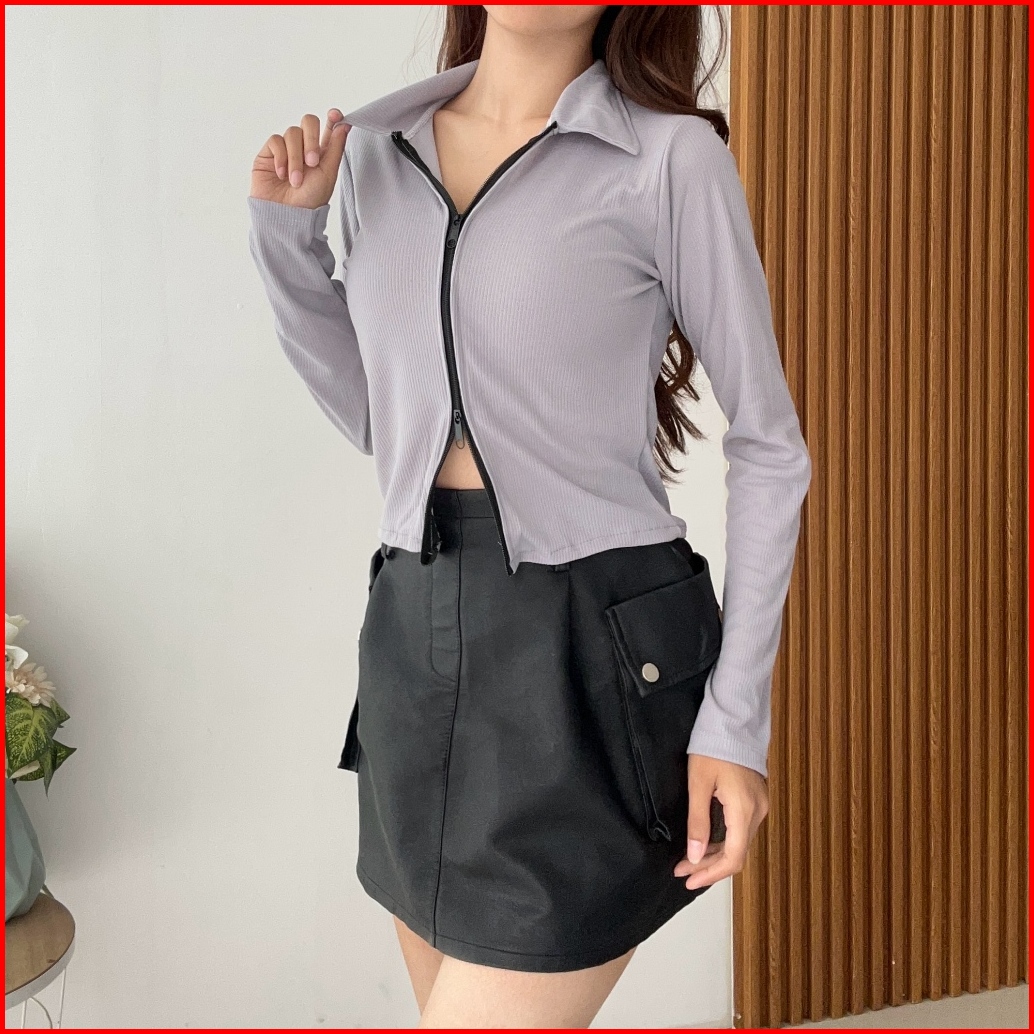 Rx Fashion - Mary Top Zipper Kaos Crop Putih Restleting Lengan Panjang -pn