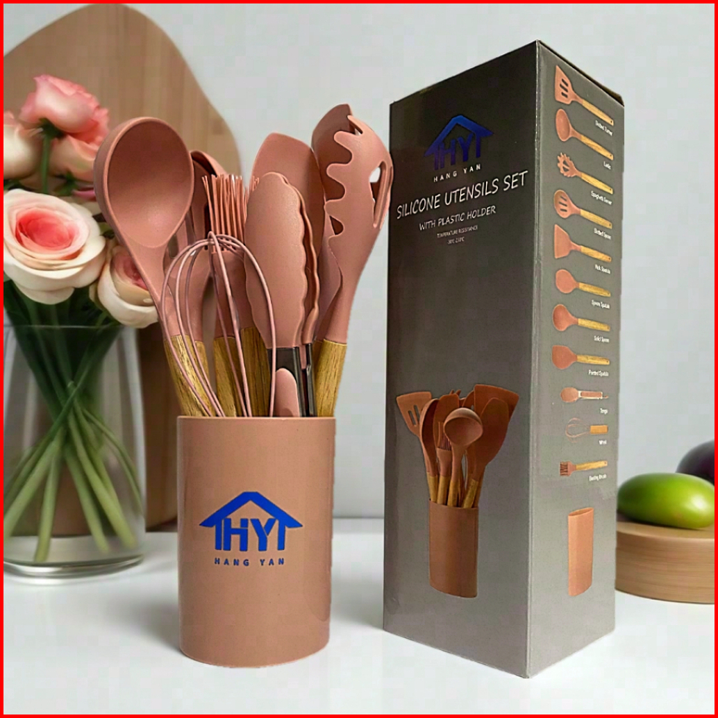 Hangyan Kitchen Silicon Utensile Set Bucket Sodet Silikon Spatula Set Utensile Set 12 Set