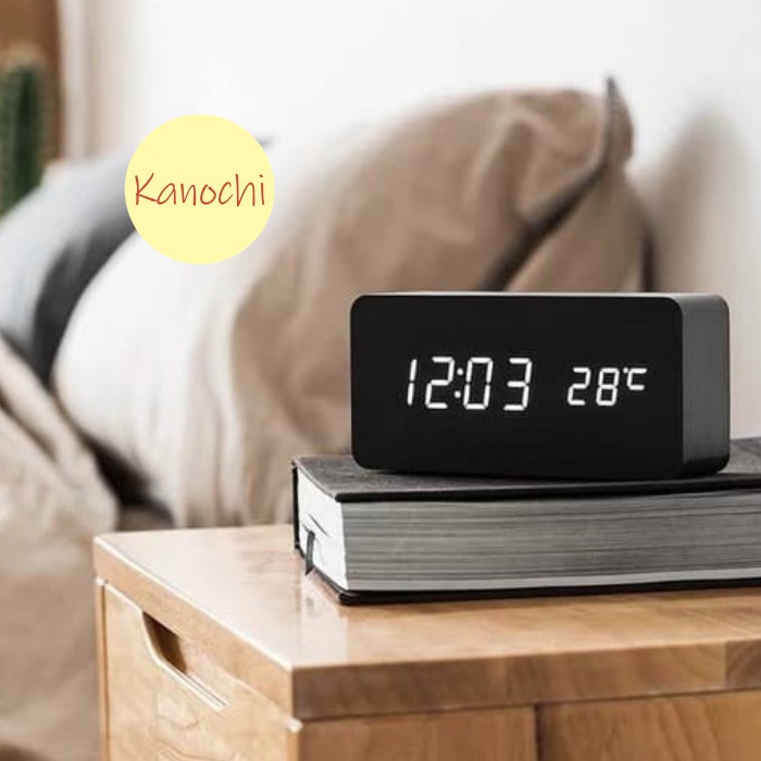 Jam Alarm Digital Light LED Wood Meja Motif Kayu
