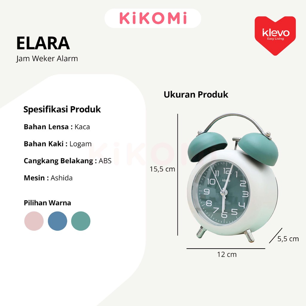 KLEVO ELARA Jam Weker Meja Alarm Analog Retro Estetik Cantik Untuk Hiasan Dekorasi Kamar Tidur - KK