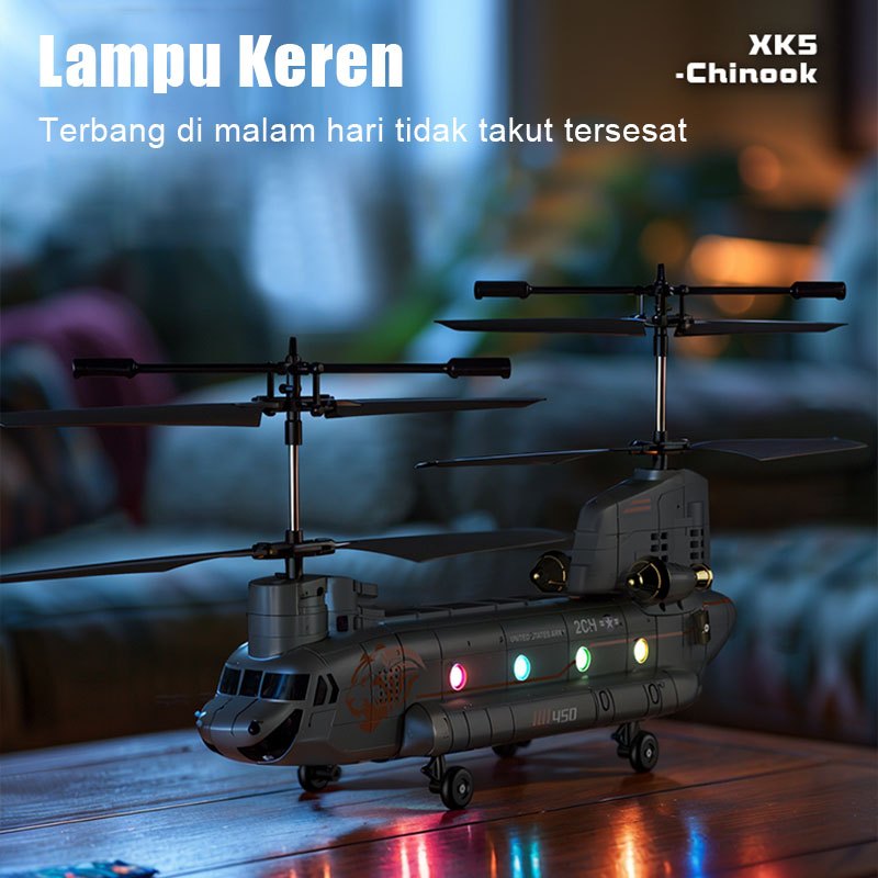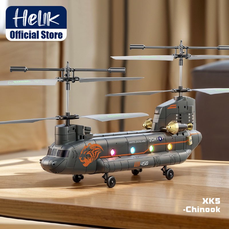 TERLARIS HELIK XK-5 Helikopter Remote Control Pesawat Angkut Baling-Baling Ganda 3,5 Channel Plating RC Pesawat