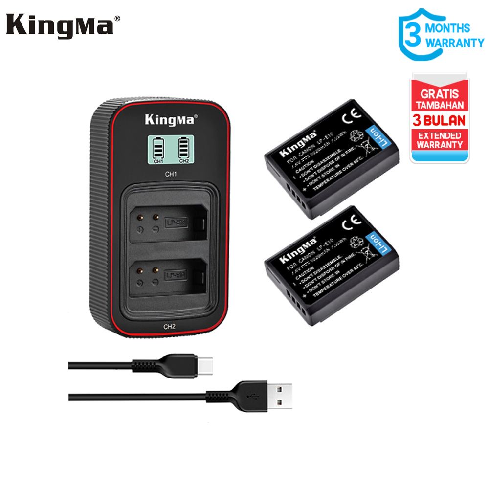 KINGMA Baterai 2-pack Canon LP-E10 Dual Charger LCD for Canon Eos 1100D 1200D Rebel T3 Kiss X50 Kiss