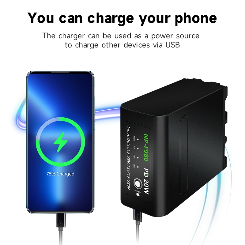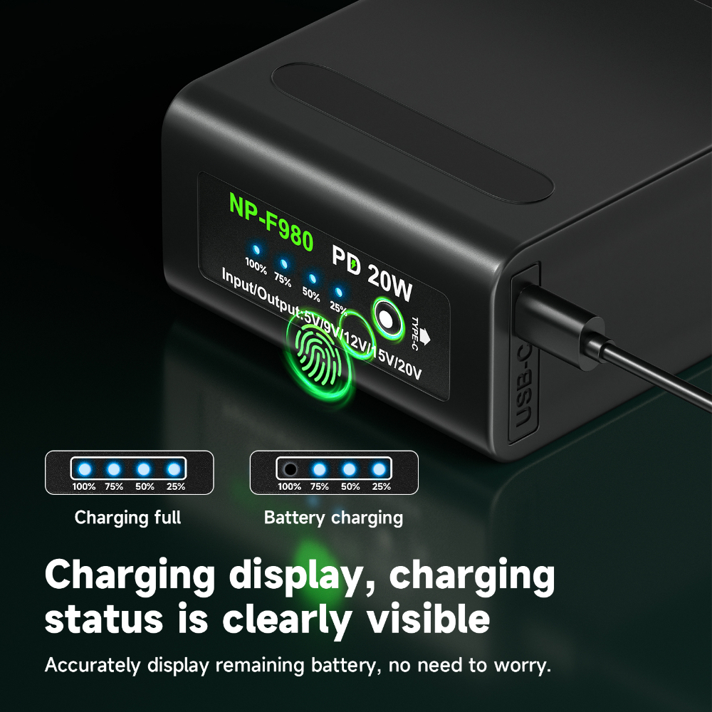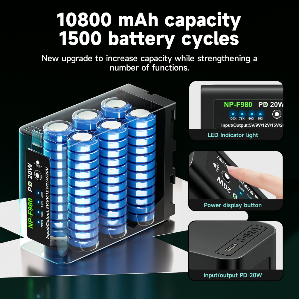 PALO Baterai Sony NP-F960 F980 F970 10800mAh - Isi Ulang Cepat PD-20W via USB untuk Kamera CCD-TRV35/TRV940/RV100