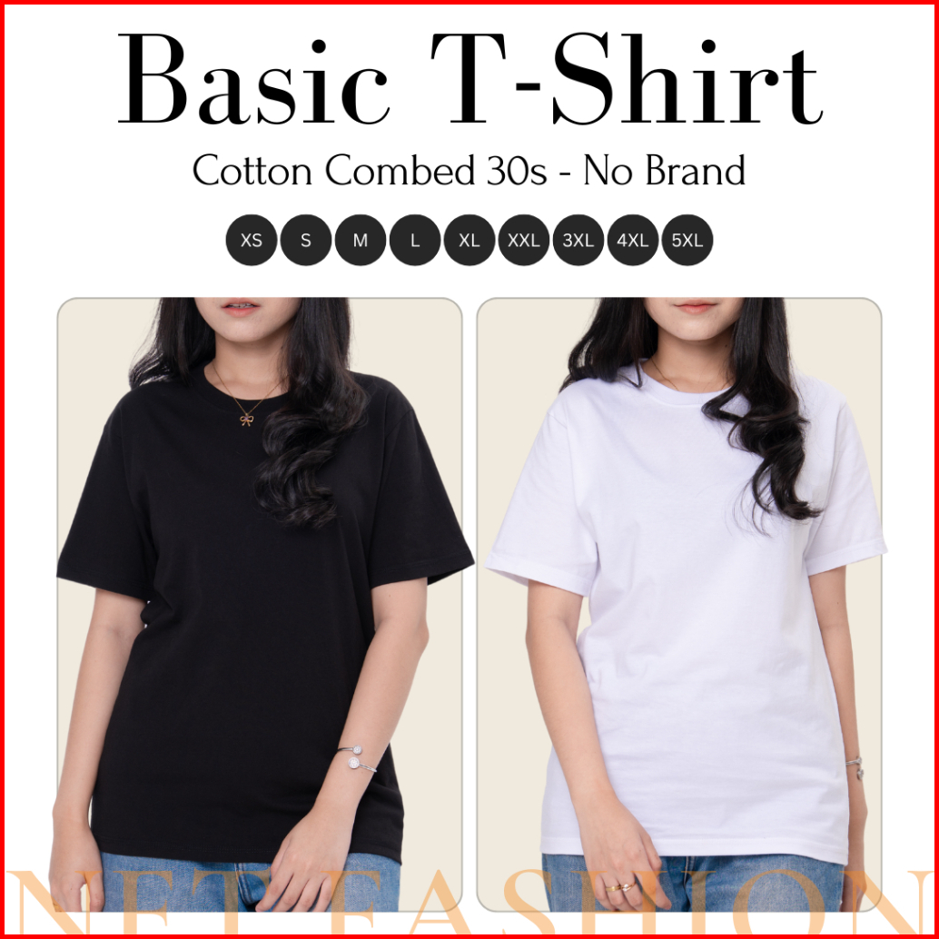 Kaos Polos Wanita Soft Cotton Combed 30s Kaos Lengan Pendek Reguler Fit - Black Hitam White Putih