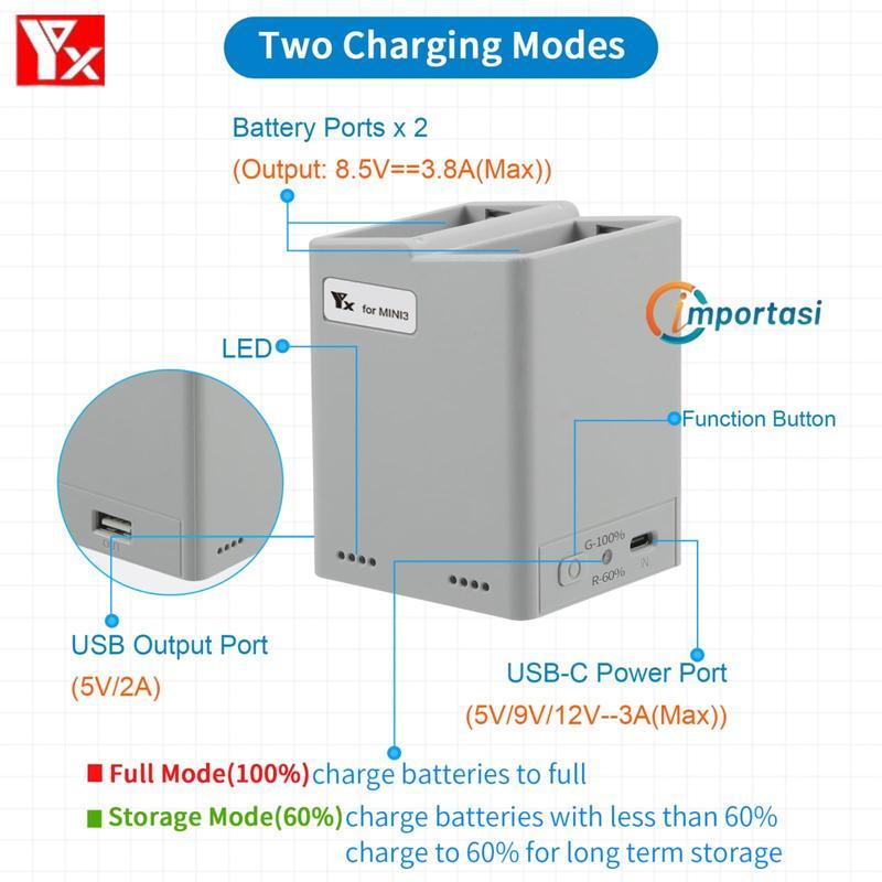 YX Charging HUB 2 Slot Battery Charger for DJI MINI 5 Pro MINI 4 & MINI 3 3Pro Fast Charging QC 3.0