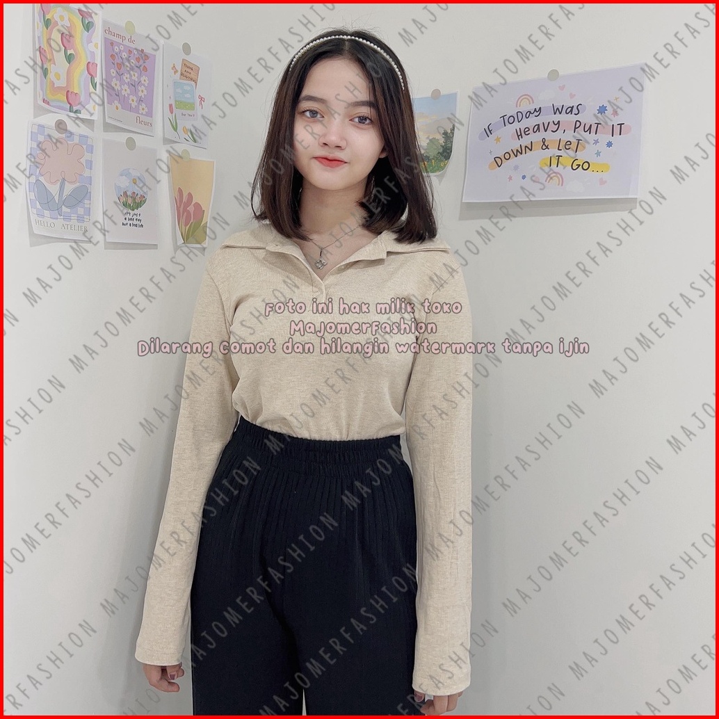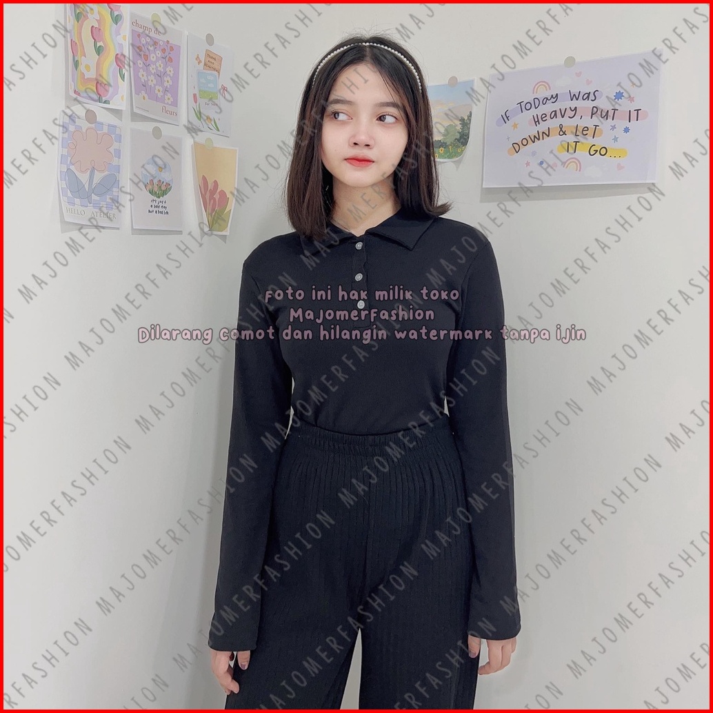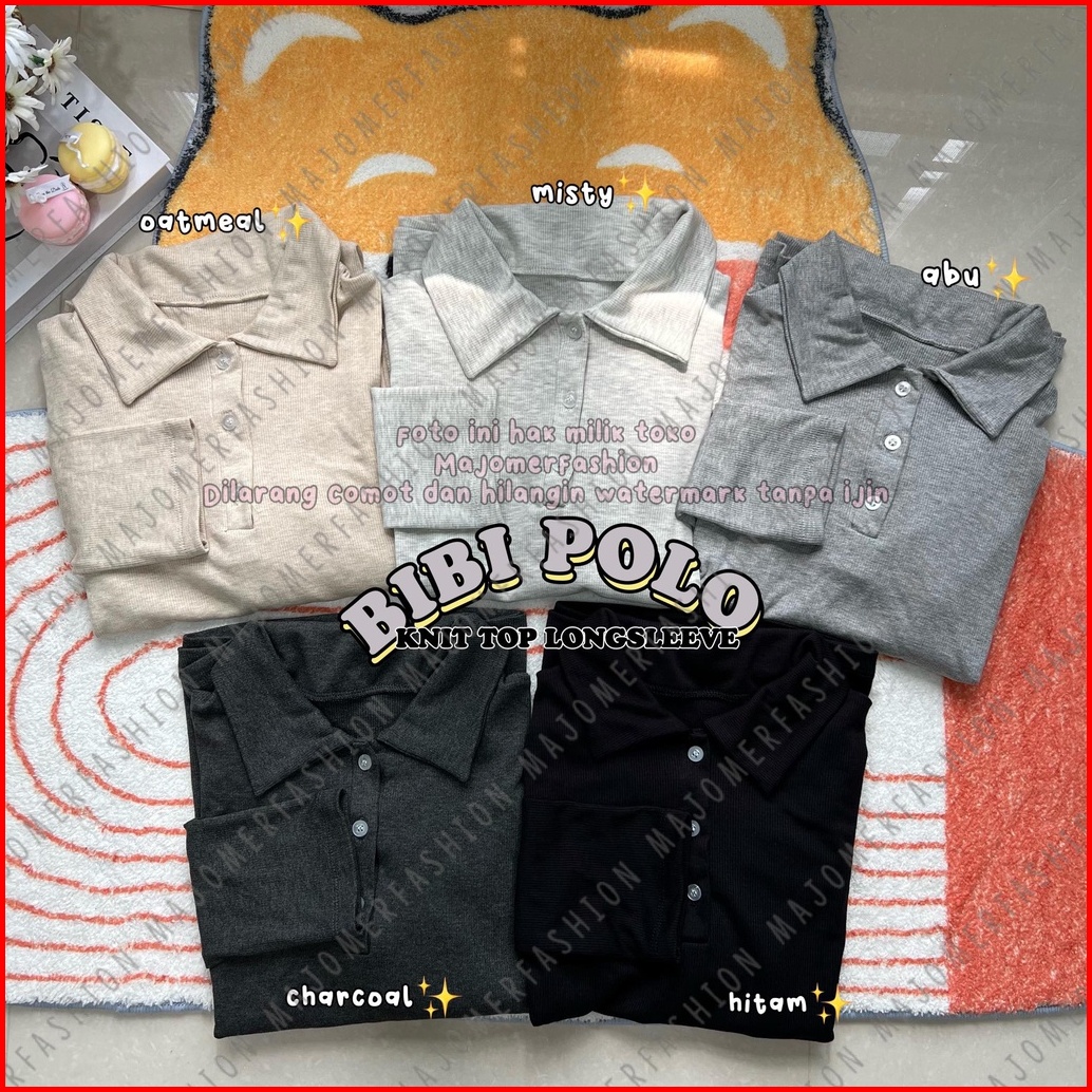 Majomer Bibi Polo Knit Top Longsleeve - Kaos Lengan Panjang Atasan Rib Fit Body
