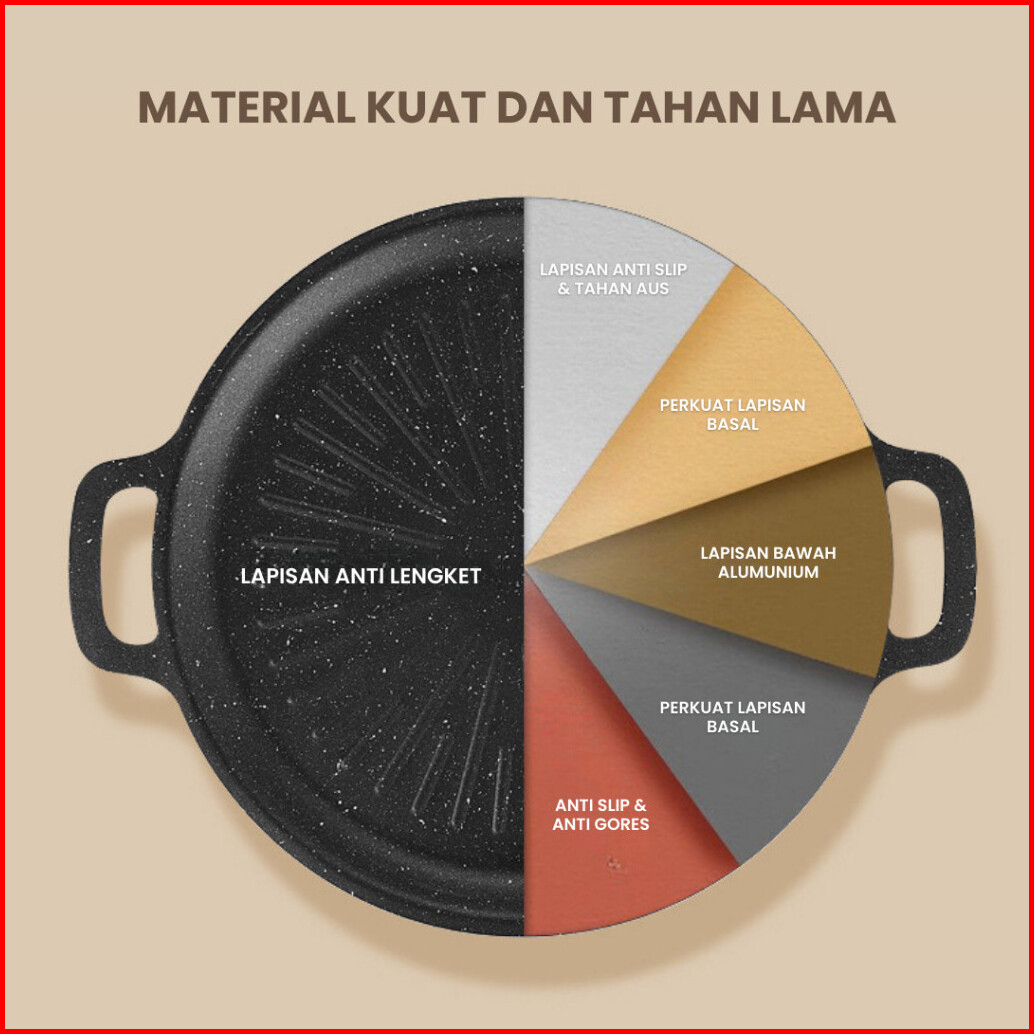 Wajan Panggangan Bbq Grill Pan Korean Wajan Bulat Anti Lengket Serbaguna 32 Cm - Dn