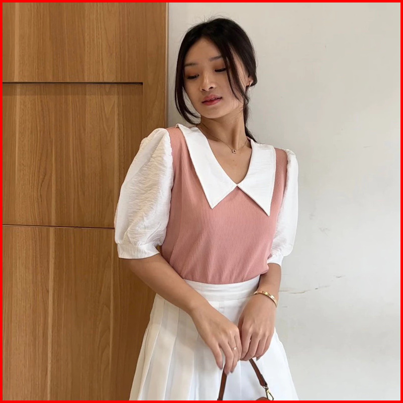 Rx Fashion - Yoona Top Combi Knit Atasan Crop Korean Style -pn