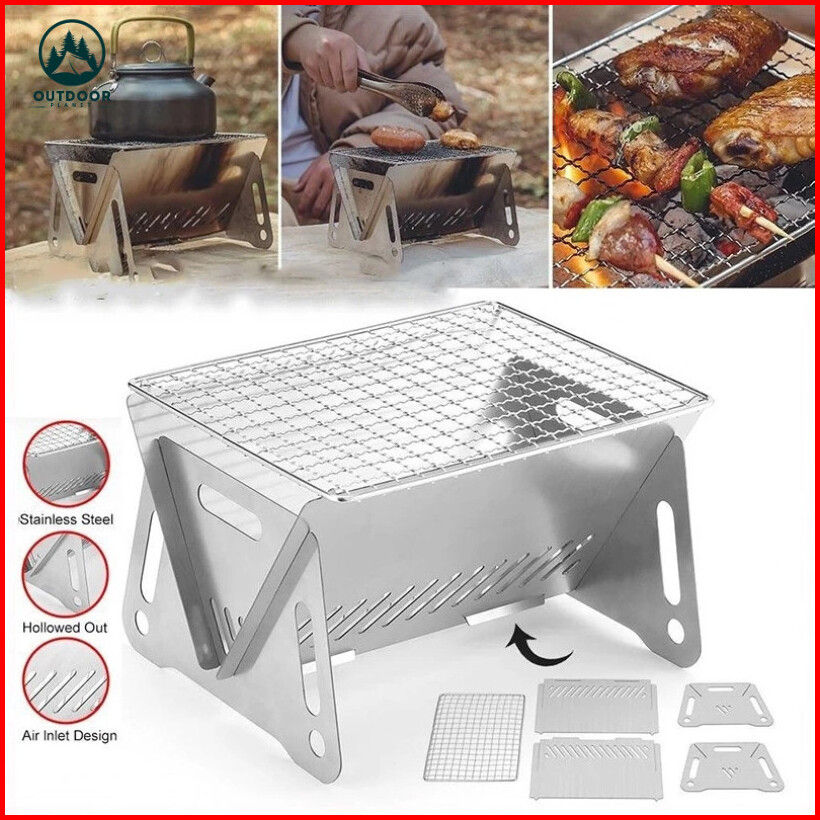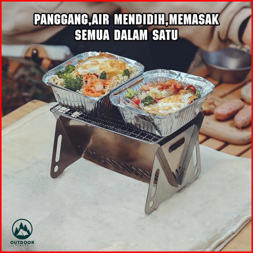 Outdoor Planet Garansi 1 Tahun Kompor Lipat Camping Mini Kayu Bakar Kompor Grill Portable Barbecue Grill Kaset Pangganga
