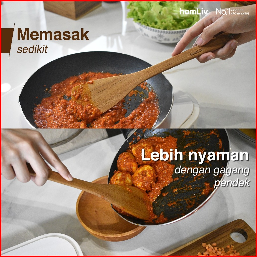 Homliv Sutil Kayu Jati Premium 28.5 Cm Leora Teak Wood Alat Masak Food Grade