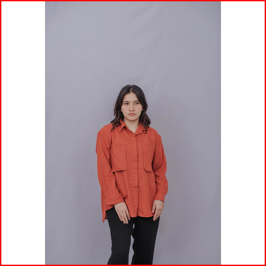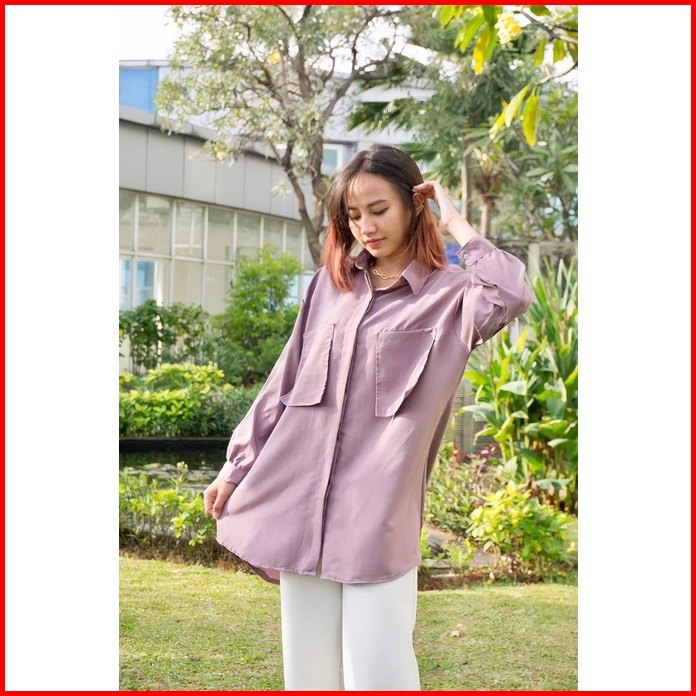Rx Fashion - Areum Korean Oversize Xxl Shirt Katun Twistcone Kemeja Pocket Oversize Kemeja Lenders Blouse Aulys Korean O