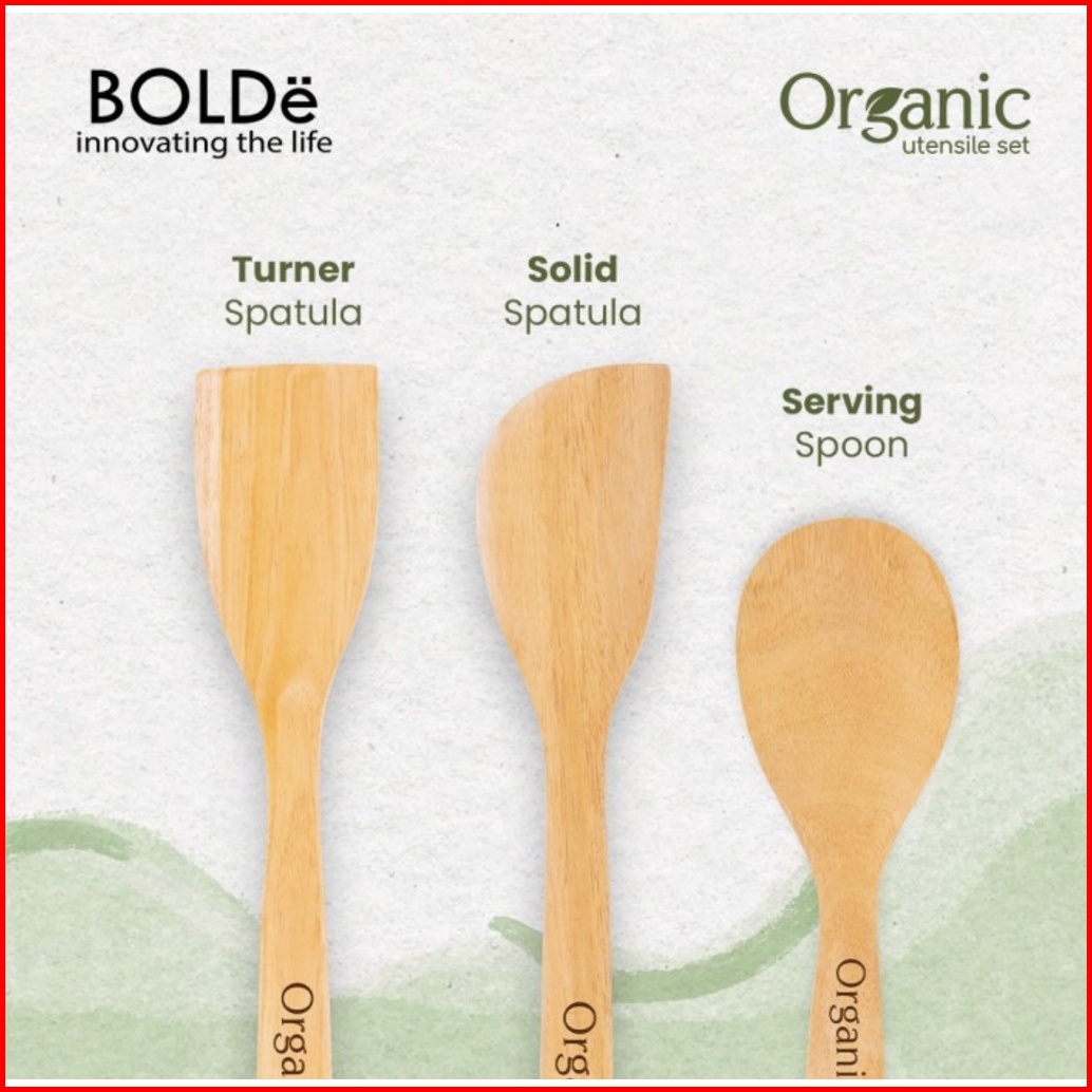Organic Utensil Set 3 Pcs Wood Series - Utensil Spatula Bahan Kayu