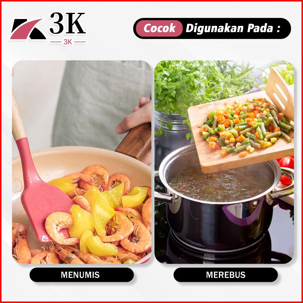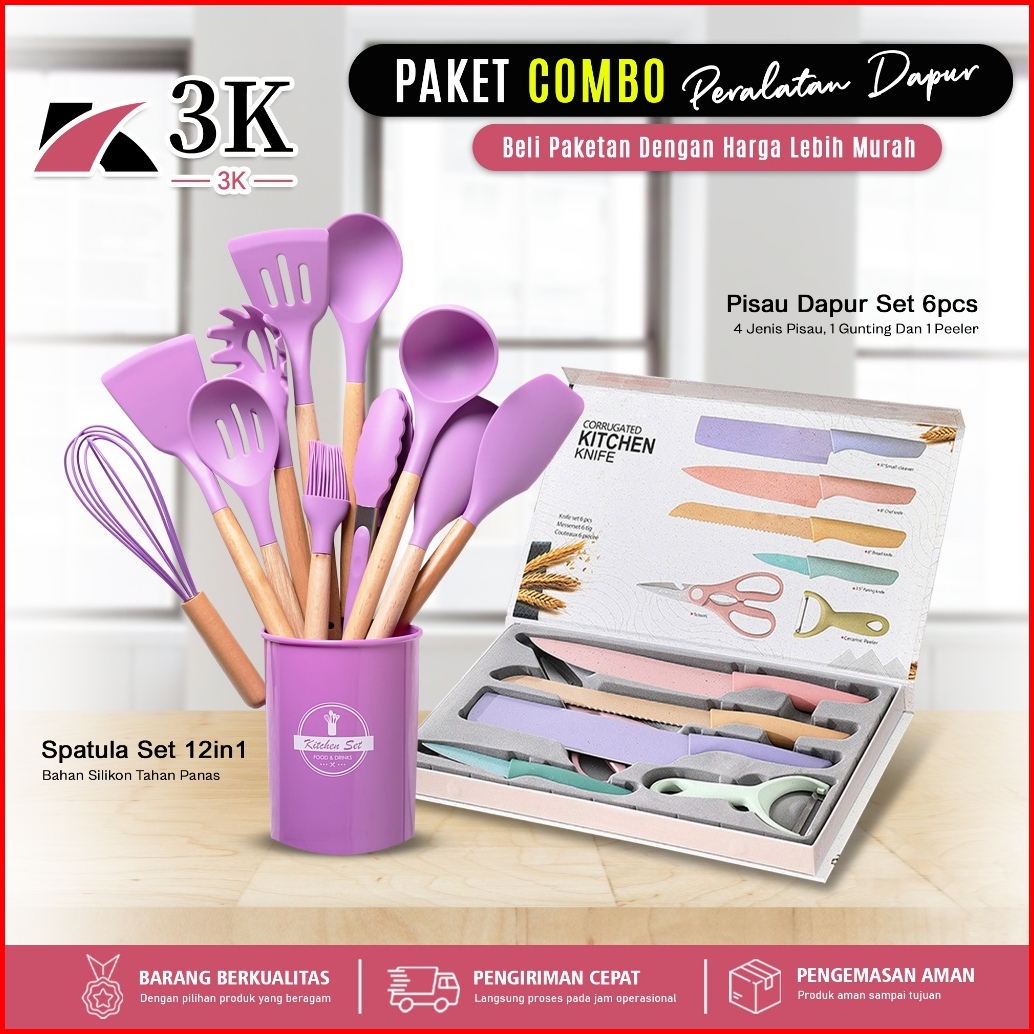 3k Surabaya Combo Perlengkapan Dapur Spatula 12in1 Set Bahan Silikon Set Pisau Dapur 6pcs