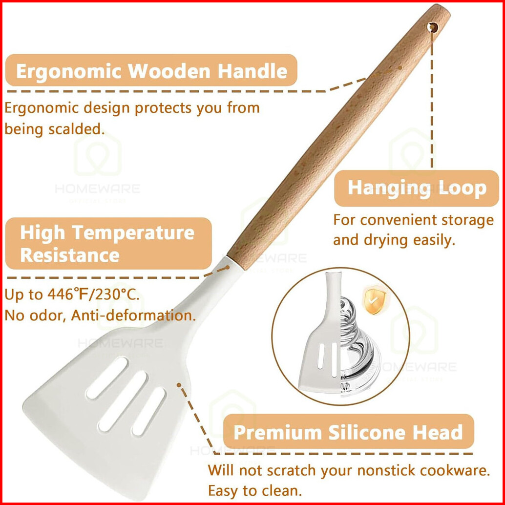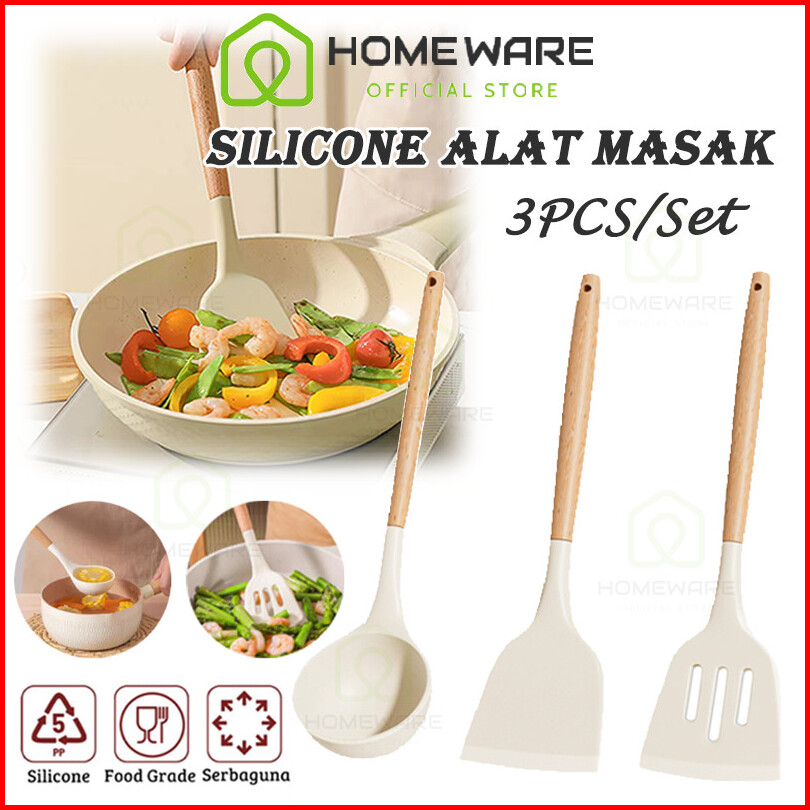Home Ware 3pcs Set Wadah Spatula Spatula Set Silikon Tahan Panas Pegangan Kayu Baking Set Alat Masak Spatula Silicone Si