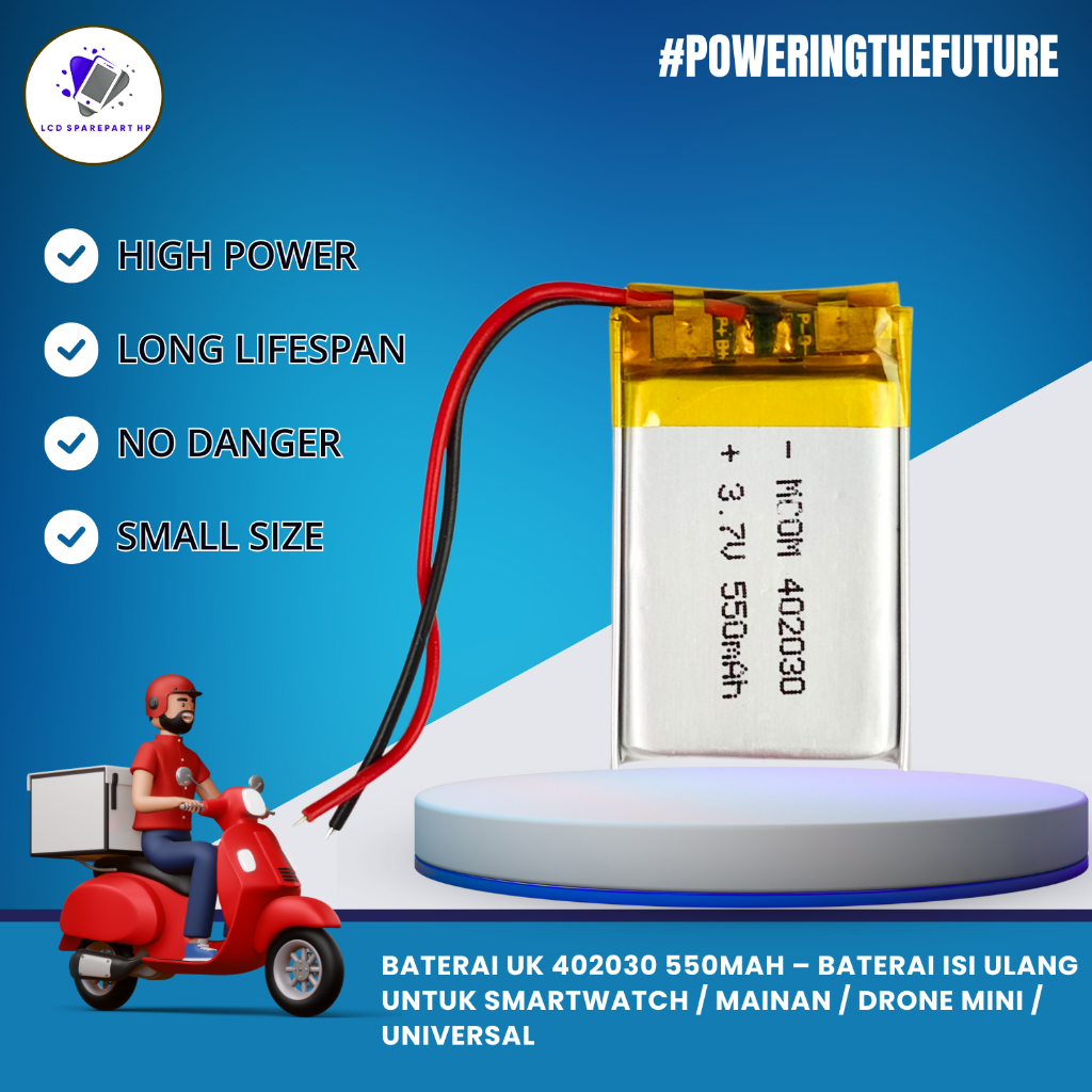 BATERAI UK 402030 550MAH – BATERAI ISI ULANG UNTUK SMARTWATCH / MAINAN / DRONE MINI / UNIVERSAL