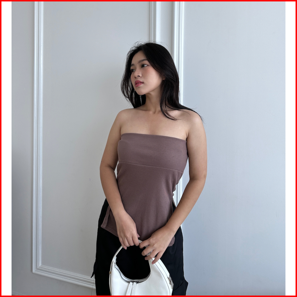 Gael Tub Kemben Panjang Slit Knit Long Tube Top Atasan Kemben Wanita Kemben Rajut Belah Samping