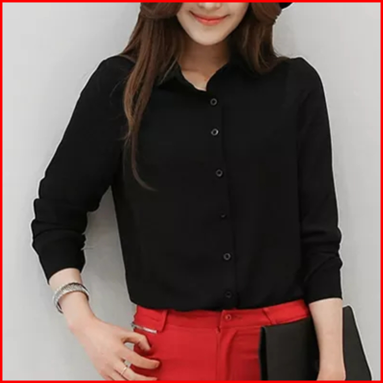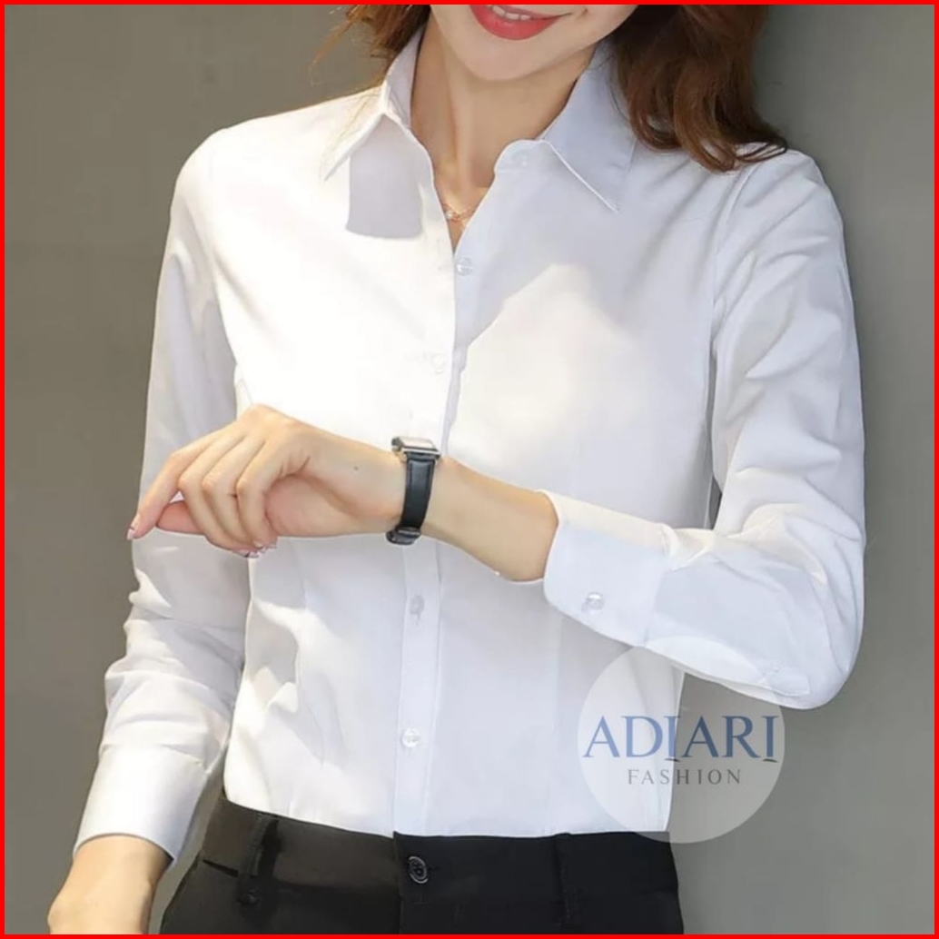 Kemeja Polos Wanita Atasan Kasual Polos Putih Hitam Formal Kemeja Kerja