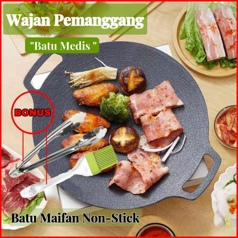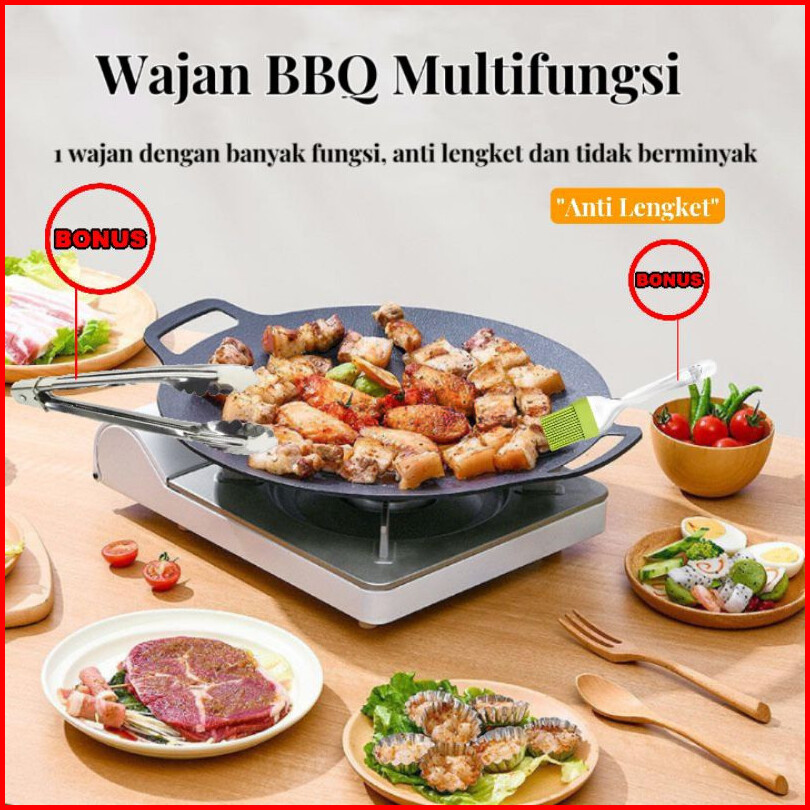 Wajan Anti Lengket Teflon Anti Lengket Alumunium Konduksi Anti Lengket 34cm Bonus Jepitan Kuas Wajan Grill Bbq Korea Ant