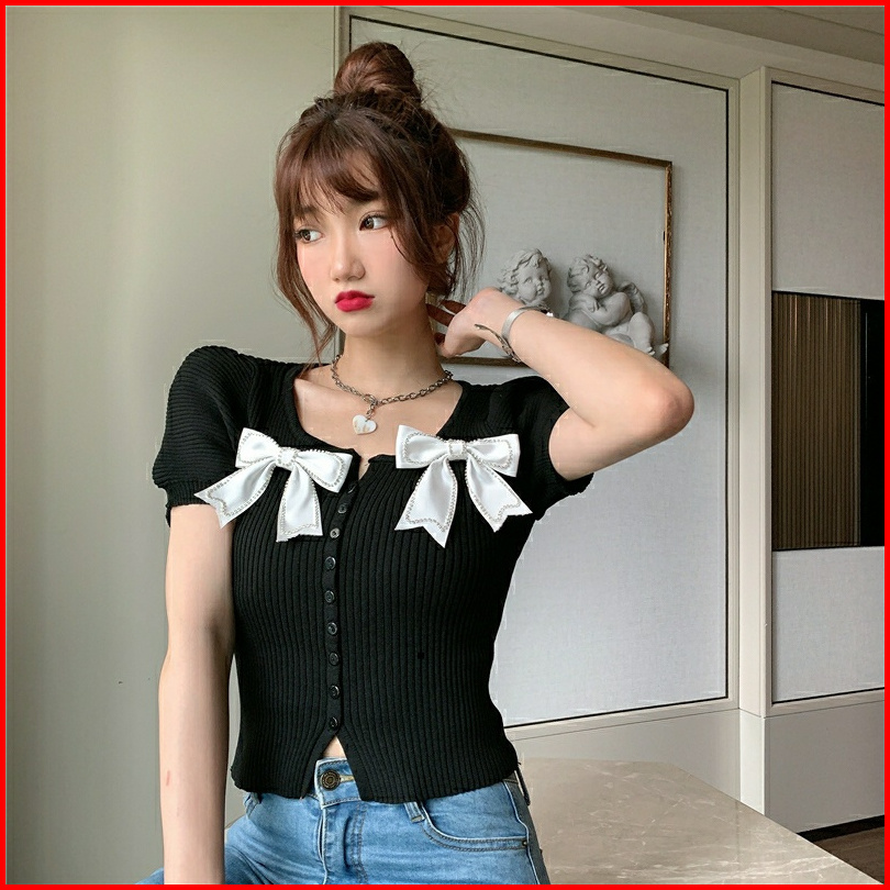 Rx Fashion - Punipun Top Atasan Knit Pita Visil Tye Dye Korean Top Coquette -pn