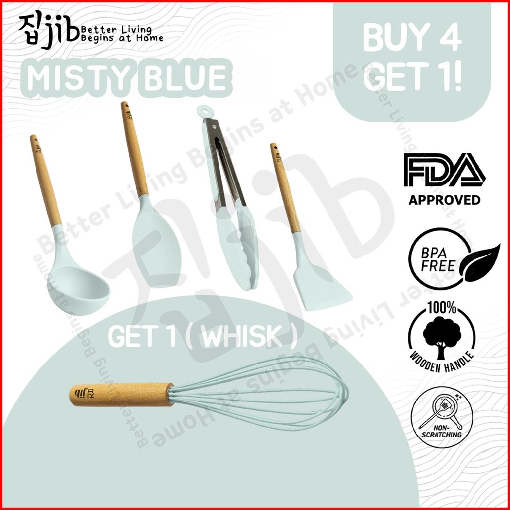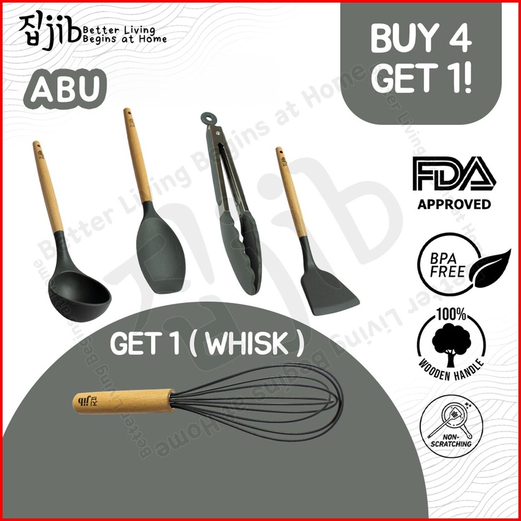 Jib Utensil Silicone Buy 4 Get 1 Bundle Utensil Silikon Sutil Silikon Tahan Panas Gagang Kayu Kitchenware