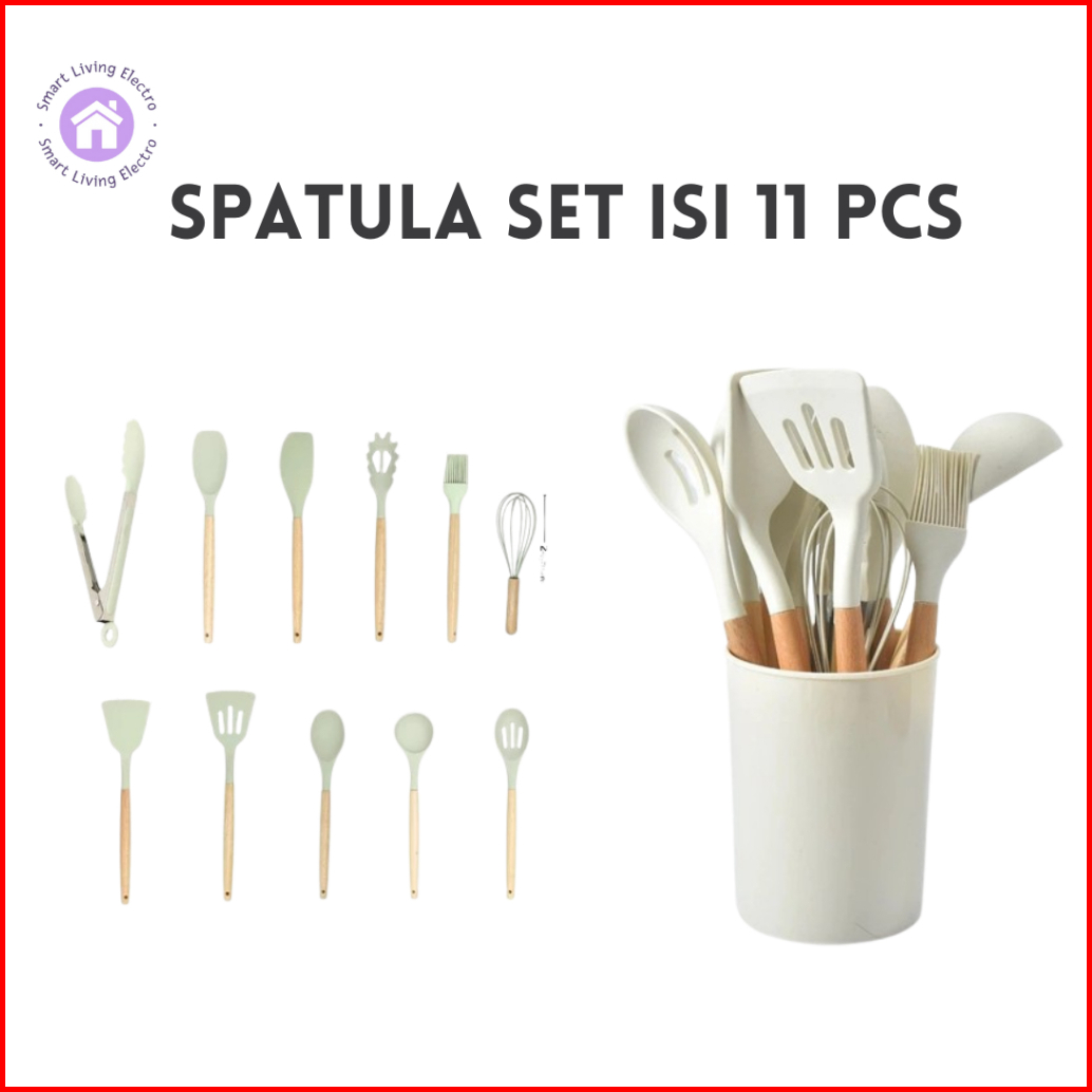 Set Spatula Silicon Spatula Aesthetic Set Spatula Isi 11 Pcs Wadah Utensil Set Spatula