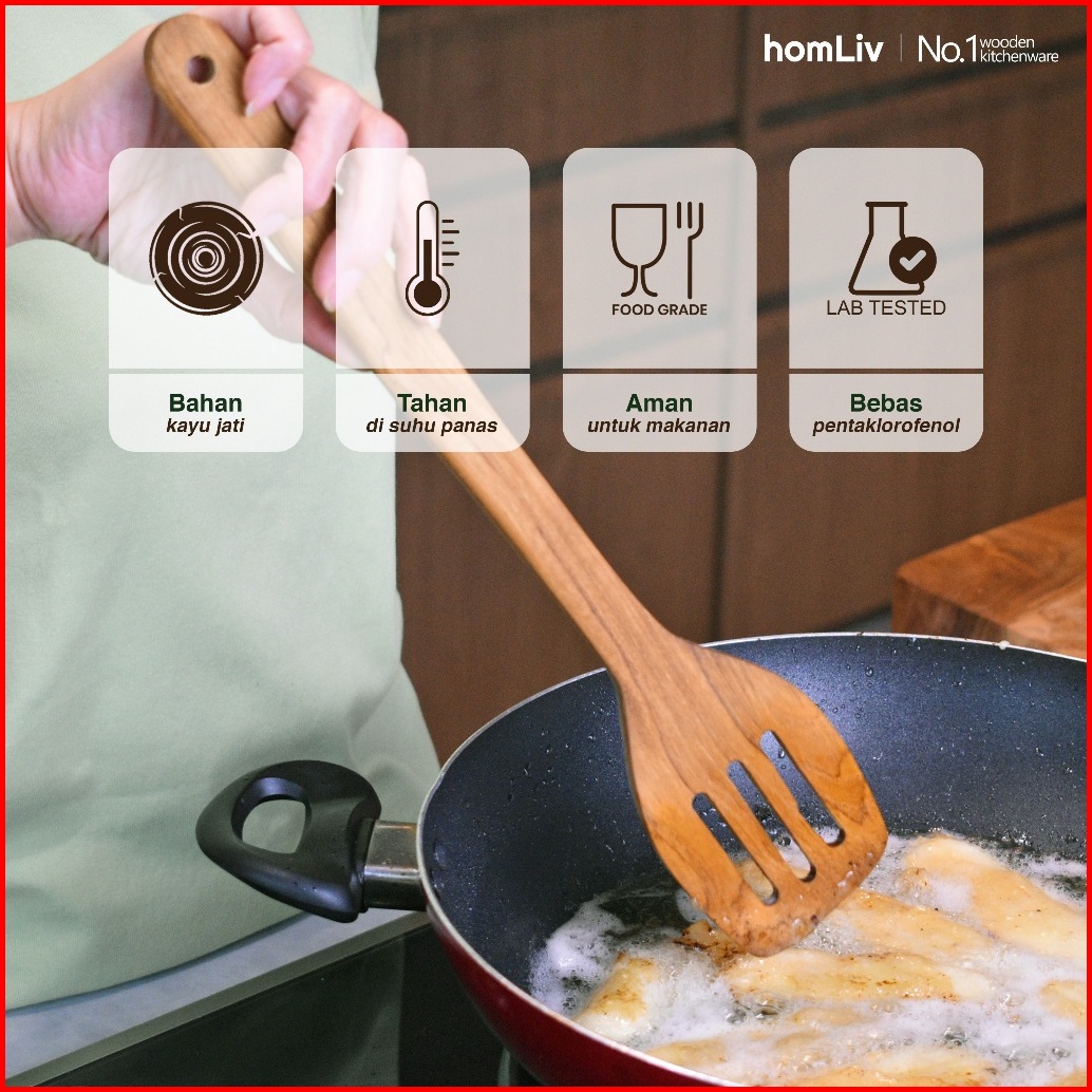 Homliv Sutil Kayu Jati 35 Cm Tamara Teak Wood Alat Masak Foodgrade 07257