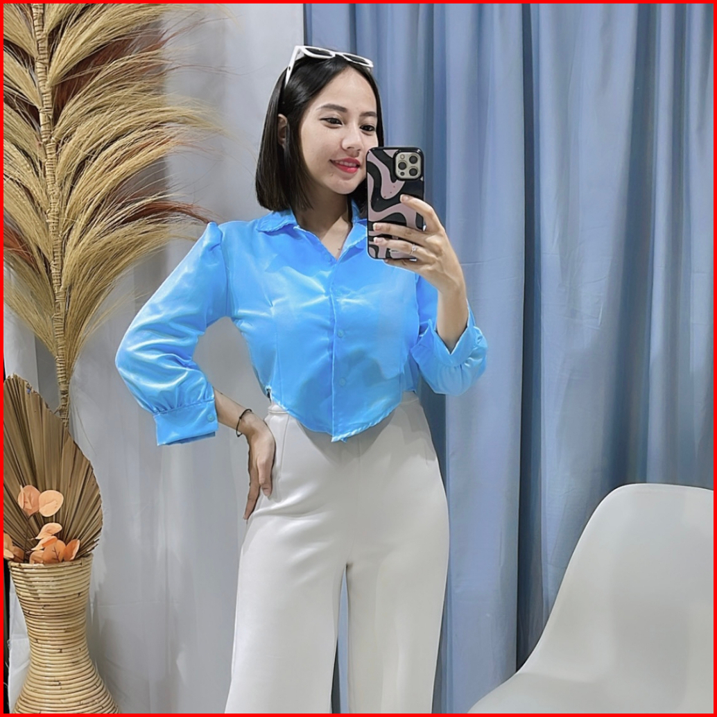 Rx Fashion - Atasan Kemeja Crop Puff Chia Tangan Panjang Baju Crop