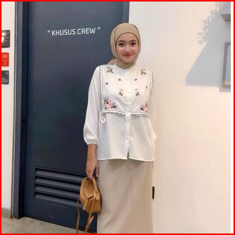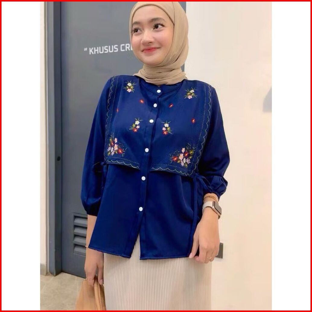 Rx Fashion - Narika Blouse Tali Combi Motif Bunga Atasan Blouse Wanita -pn