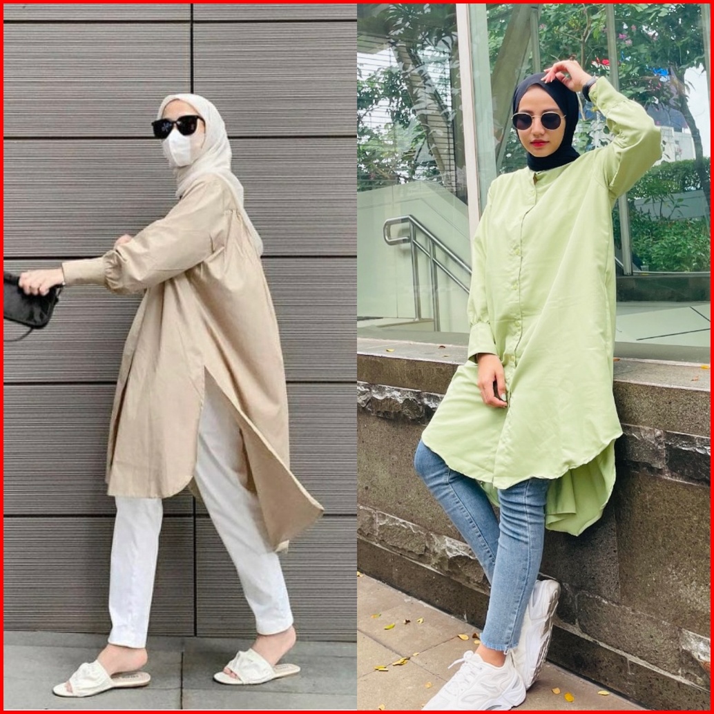 Rx Fashion - Kemeja Ailen Katun Twistcone Xxl Tunik Ayumi Hanley Long Shirt Hanley Tunik Atasan Muslim Fashion Wanita Te