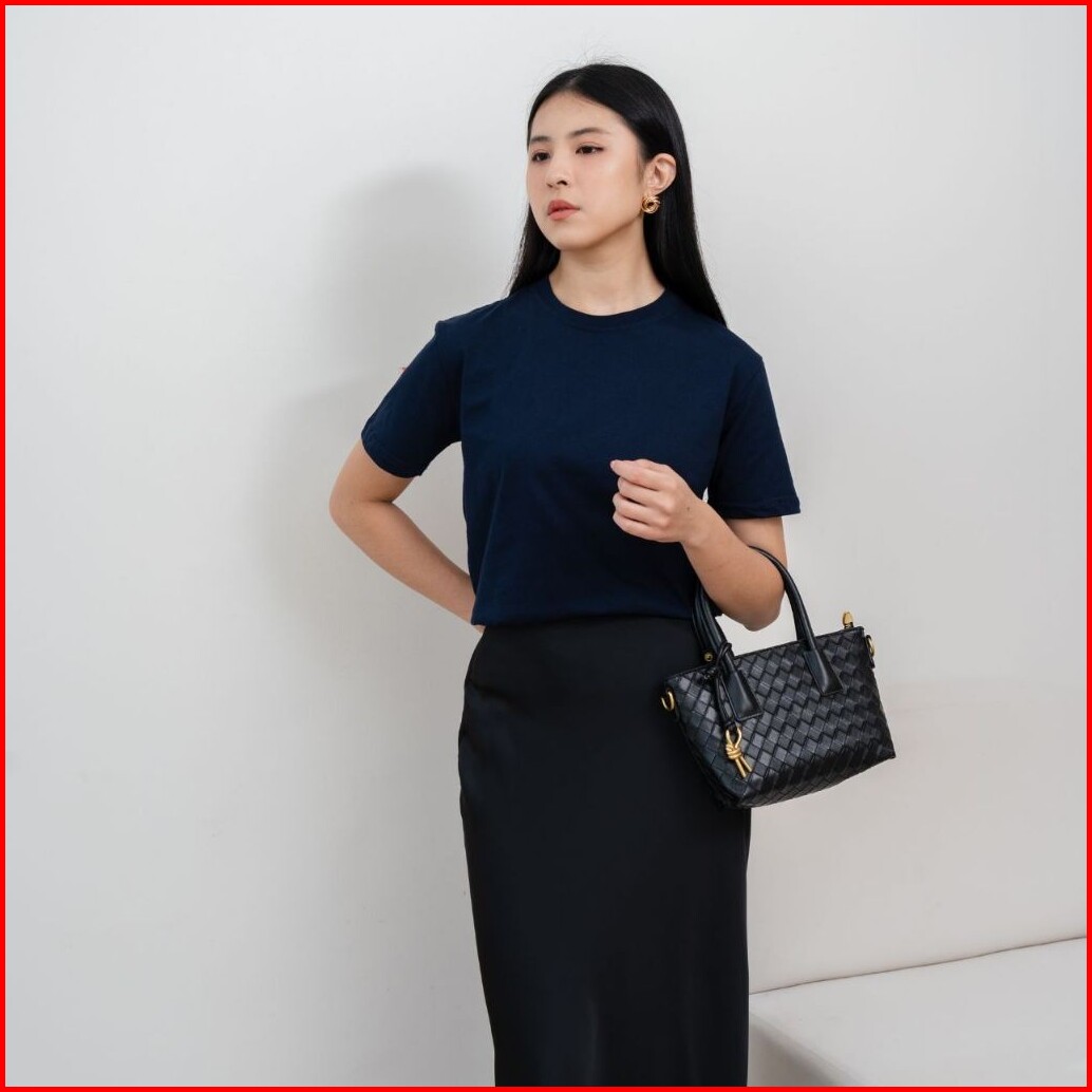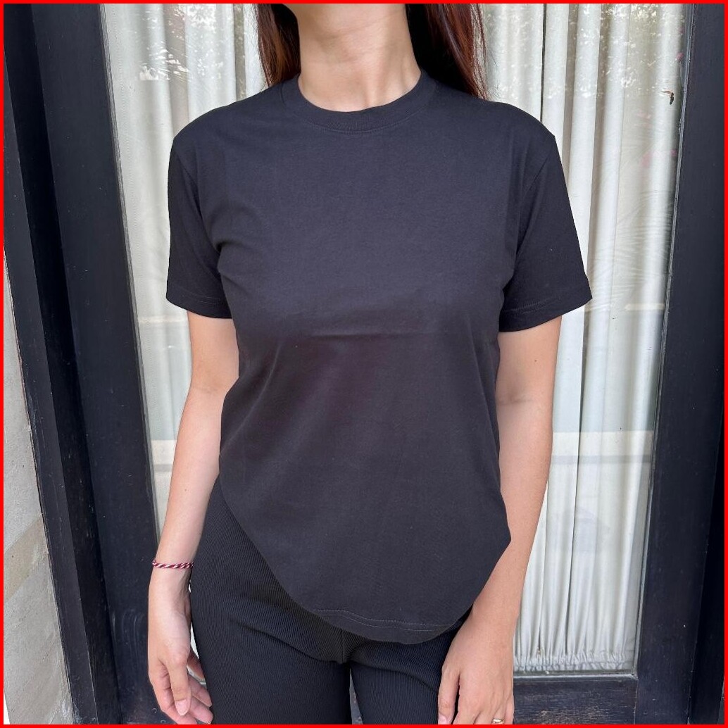 Aijo Kaos Cewek Polos Lembut 24s Basic Cotton Halus Hitam - Atasan Wanita Kaos Coklat Navy Combed Katun Baju Oblong Maro