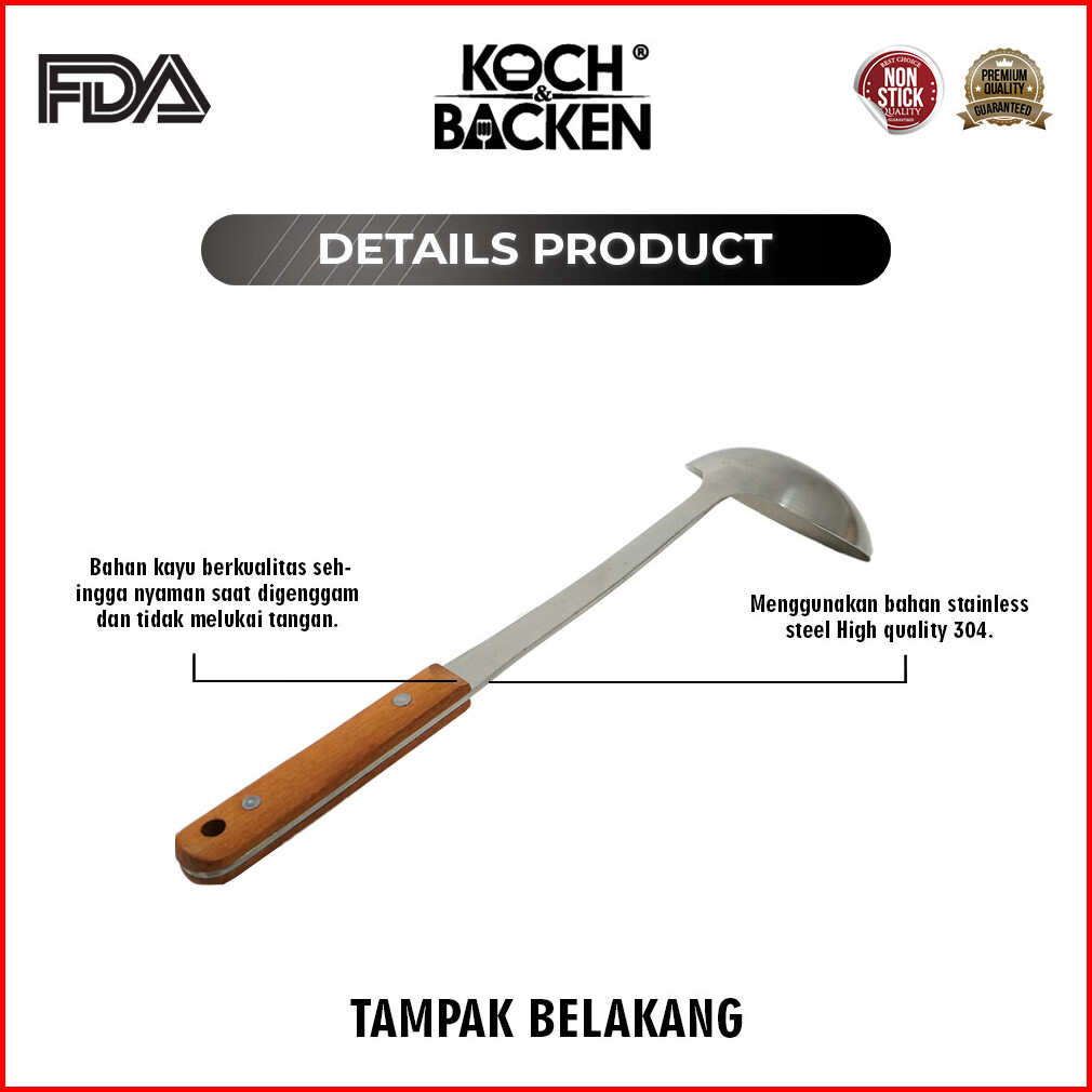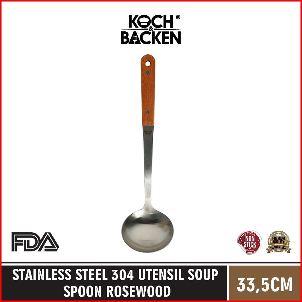 Koch Backen Stainless Steel Utensil Soup Spoon Rosewood 33cm Anti-scalding - Spatula Sutil Stainless 304 Tebal Sodet Gag