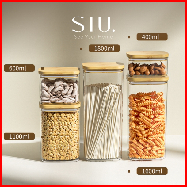 Bamboo Toples Makanan Plastik Kaca Tutup Kayu Kedap Udara Astetik Minimalis Serbaguna