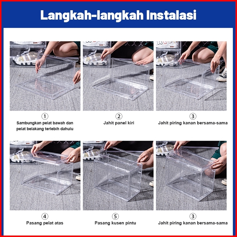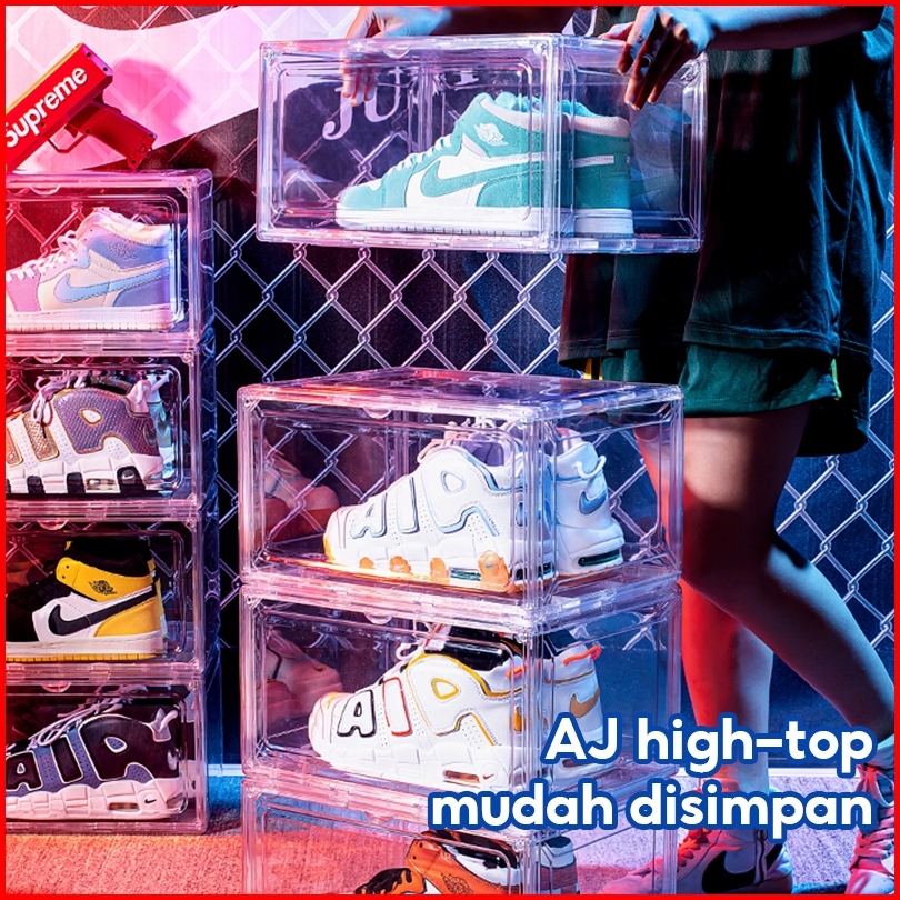 Lejumall Kotak Sepatu Transparan Tebal Plastic Desain Acrylic Shoe Box Magnetik Sneaker Storage
