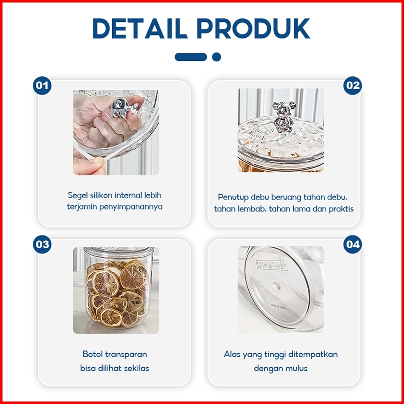 Lejumall Toples Serbaguna Food Container Tempat Penyimpanan Makanan Toples Kedap Udara Kontainer Wadah Makanan Transpara