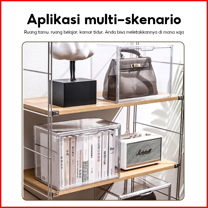 Lejumall Acrylic Display Box Organizer Transparan Kotak Penyimpanan Akrilik Tas Bag Storage Box Tempat Mainan Book Magaz