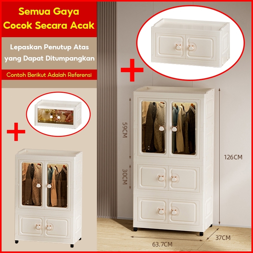 Lejumall Lemari Plastik Pakaian Dapat Dilipat 3 4 5 Tingkat Laci Susun Storage Cabinet Plastik Rak Susun Penyimpanan Lem
